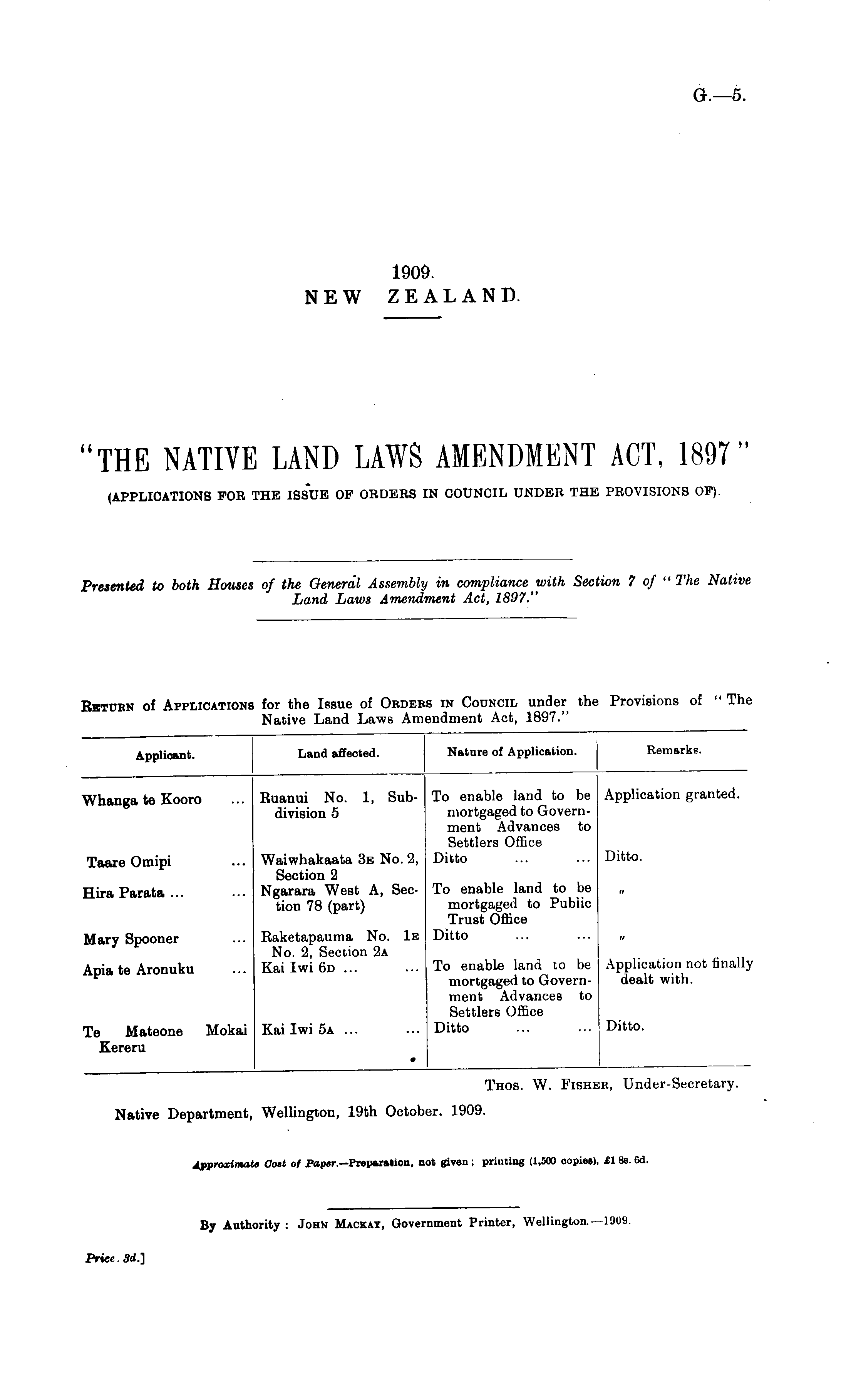 Authority : JohH Mackay, Government Printer, Wellington.—l9o9.