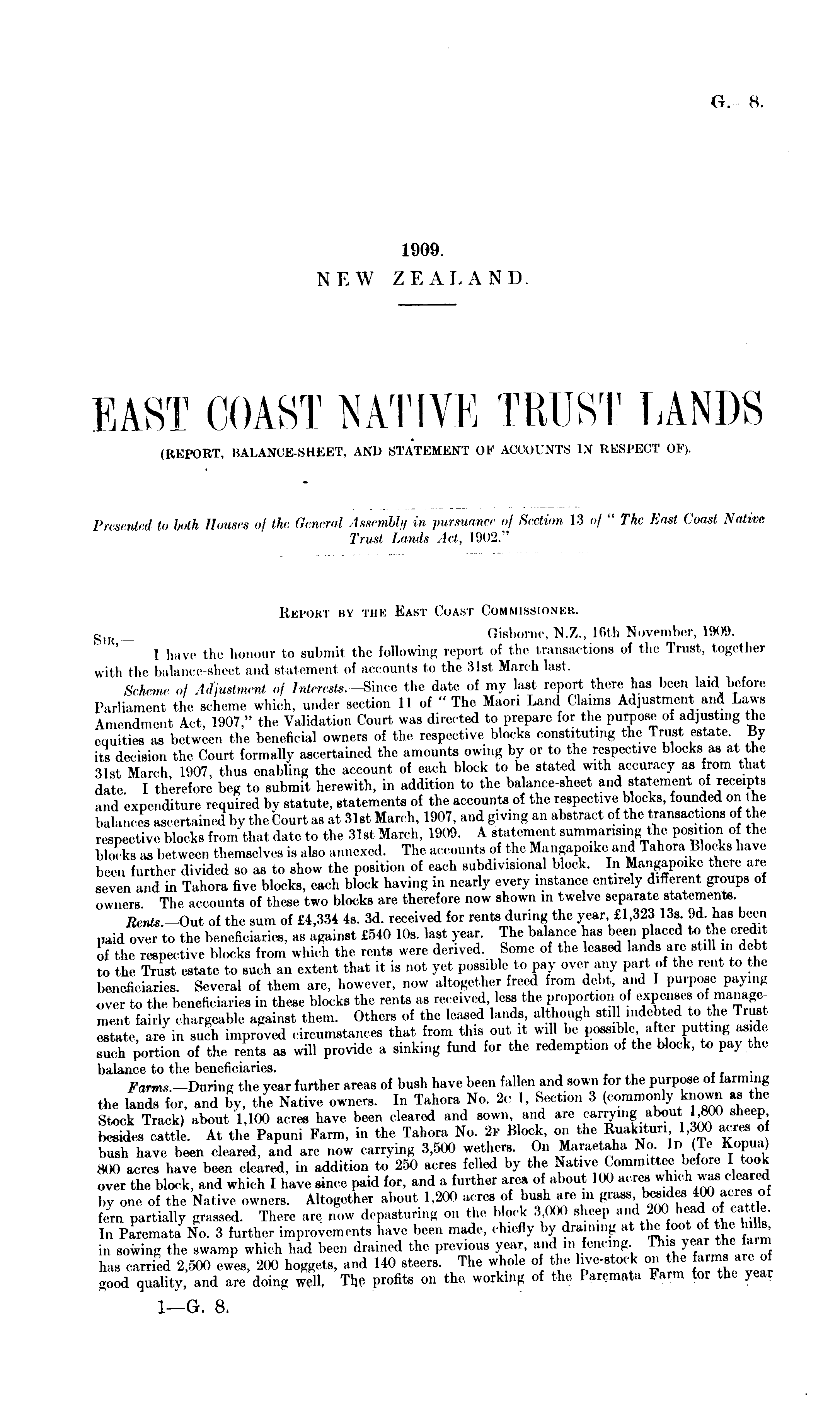 EAST COAST NATIVE TRUST LANDS (REPORT, BALANCE-SHEET, AND STATEMENT OF ACCOUNTS IN RESPECT OF).
