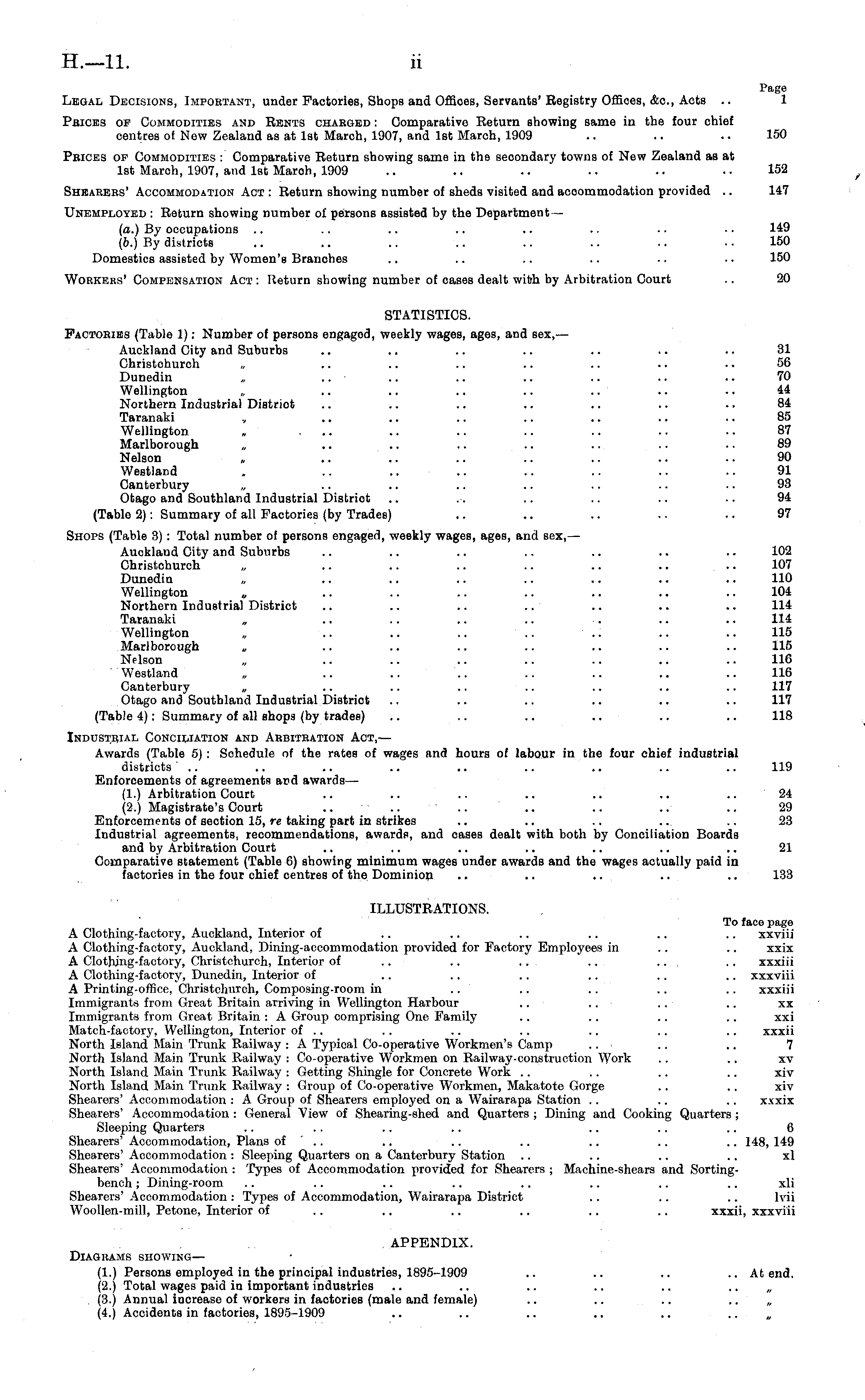 Page Legal Decisions, Important, under Factories, Shops and Offices, Servants' Begistry Offices, &c, Acts .. 1 Pbices op Commodities and Bents charged : Comparative Return showing same in the four chief centres of New Zealand as at Ist March, 1907, and Ist March, 1909 .. .. .. 150 Prices of Commodities : Comparative Beturn showing same in the secondary towns of New Zealand as at Ist March, 1907, and Ist Maroh, 1909 .. .. .. .. .. .. 152 Shearers' Accommodation Act : Return showing number of sheds visited and accommodation provided .. 147 Unemployed : Return showing number of persons assisted by the Department — (a.) By occupations .. .. .. .. .. .. . • .. 149 (6.) By districts .. .. .. .. .. .. .. .. 150 Domestics assisted by Women's Branches .. .. .. .. .. .. 150 Workers' Compensation Act : Return showing number of cases dealt with by Arbitration Court .. 20 STATISTICS. Factories (Table 1): Number of persons engaged, weekly wages, ages, and sex, — Auckland City and Suburbs .. .. .. .. .. .. .. 31 Christchurch „ .. .. .. .. .. .. .. 56 Dunedin , .. .. .. .. .. .. .. 70 Wellington „ .. .. .. .. .. .. .. 44 Northern Industrial District .. .. .. .. .. .. .. 84 Taranaki ~ .. .. .. .. .. .. .. 85 Wellington . ... .. .. .. .. .. .. 87 Marlborough „ .. .. .. .. .. .. .. 89 Nelson . .. .. .. .. .. .. .. 90 Westland , .. .. .. .. .. .. .. 91 Canterbury „ .. .. .. .. .. .. .. 93 Otago and Southland Industrial Distriot .. .. .. .. .. .. 94 (Table 2): Summary of all Factories (by Trades) .. .. .. .. .. 97 Shops (Table 3) : Total number of persons engaged, weekly wages, ages, and sex, — Auckland City and Suburbs .. .. .. .. .. .. .. 102 Christchurch „ .. .. .. .. .. .. 107 Dunedin „ .. .. .. .. .. .. ..110 Wellington „ .. .. .. .. .. .. ..104 Northern Industrial District .. .. .. .. .. .. .. 114 Taranaki „ .. .. .. .. . .. 114 Wellington „ .. .. .. .. .. .. .. 115 Marlborough „ .. .. .. .. .. .. .. 115 Nelson „ .. .. .. .. .. .. .. 116 Westland „ .. .. .. .. .. .. ..116 Canterbury „ .. .. .. .. .. .. .. 117 Otago and Southland Industrial District .. .. .. .. .. .. 117 (Table 4): Summary of all shops (by trades) .. .. .. .. .. .. 118 Industrial Conciliation and Arbitration Act, — Awards (Table 5) : Schedule of the rates of wages and hours of labour in the four chief industrial districts ' .. .. .. .. .. .. .. .. .. 119 Enforcements of agreements and awards— (1.) Arbitration Court .. .. .. .. .. .. 24 (3.) Magistrate's Court .. .. .. .. .. .. .. 29 Enforcements of section 15, re taking part in strikes .. .. .. .. .. 23 Industrial agreements, recommendations, awards, and oases dealt with both by Conciliation Boards and by Arbitration Court .. .. .. .. .. .. .. 21 Comparative statement (Table 6) showing minimum wages under awards and the wages actually paid in factories in the four chief centres of the Dominion .. .. .. .. .. 133 ILLUSTRATIONS. To face page A Clothing-factory, Auckland, Interior of .. .. .. .. .. .. xxviii A Clothing-factory, Auckland, Dining-accommodation provided for Factory Employees in .. .. xxix A Clothing-factory, Christchurch, Interior of .. .. .. .. .. .. xxxiii A Clothing-factory, Dunedin, Interior of .. .. .. .. .. .. xxxviii A Printing-office, Christchurch, Composing-room in .. .. .. .. .. xxxiii Immigrants from Great Britain arriving in Wellington Harbour .. .. .. .. xx Immigrants from Great Britain : A Group comprising One Family .. .. .. .. xxi Match-factory, Wellington, Interior of .. .. .. .. .. .. .. xxxii North Island Main Trunk Railway : A Typical Co-operative Workmen's Camp .. .. .. 7 North Island Main Trunk Railway : Co-operative Workmen on Railway-construction Work .. .. xv North Island Main Trunk Railway : Getting Shingle for Concrete Work .. .. .. .. xiv North Island Main Trunk Railway : Group of Co-operative Workmen, Makatote Gorge .. .. xiv Shearers' Accommodation : A Group of Shearers employed on a Wairarapa Station .. .. .. xxxix Shearers' Accommodation : General View of Shearing-shed and Quarters ; Dining and Cooking Quarters; Sleeping Quarters .. .. .. .. .. .. .. 6 Shearers' Accommodation, Plans of .. .. .. .. .. .. .. 148, 149 Shearers' Accommodation : Sleeping Quarters on a Canterbury Station .. .. .. .. xl Shearers' Accommodation : Types of Accommodation provided for Shearers ; Machine-shears and Sortingbench ; Dining-room .. .. .. .. .. .. .. .. xli Shearers' Accommodation : Types of Accommodation, Wairarapa District .. .. .. lvii Woollen-mill, Petone, Interior of .. .. .. .. .. .. xxxii, xxxviii APPENDIX. Diagrams showing— (1.) Persons employed in the principal industries, 1895-1909 .. .. .. .. At end. (2.) Total wages paid in important industries .. .. .. .. .. „ (3.) Annual increase of workers in factories (male and female) .. .. .. .. „ (4.) Accidents in factories, 1895-1909 .. .. .. .. ..