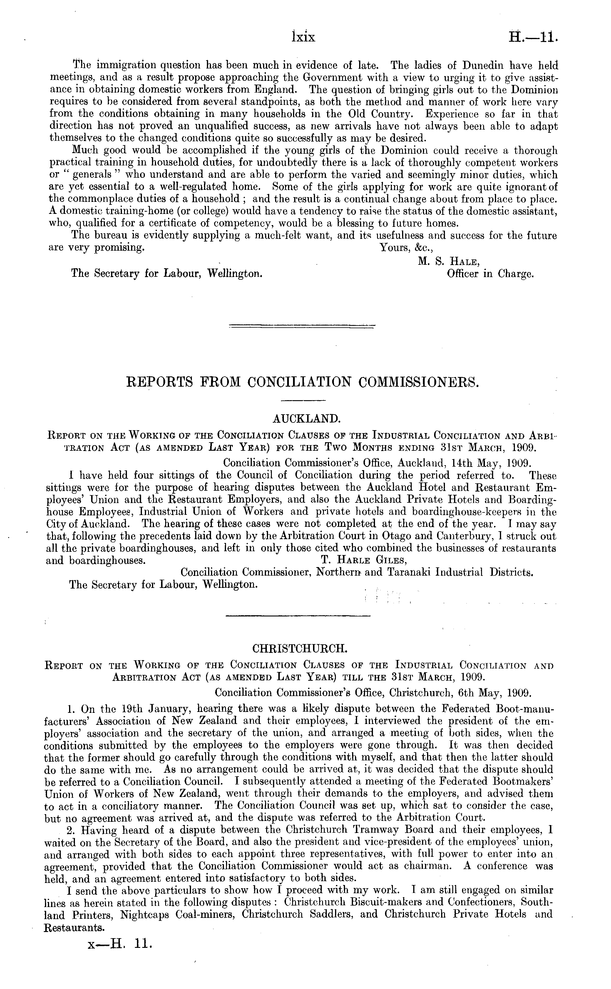 CHRISTCHURCH. Report on the Working of the Conciliation Clauses of the Industrial Conciliation and Arbitration Act (as amended Last Year) till the 31st March, 1909. Conciliation Commissioner's Office, Christchurch, 6th May, 1909. 1. On the 19th January, hearing there was a likely dispute between the Federated Boot-manu-facturers' Association of New Zealand and their employees, I interviewed the president of the employers' association and the secretary of the union, and arranged a meeting of both sides, when the conditions submitted by the employees to the employers were gone through. It was then decided that the former should go carefully through the conditions with myself, and that then the latter should do the same with me. As no arrangement could be arrived at, it was decided that the dispute should be referred to a Conciliation Council. I subsequently attended a meeting of the Federated Bootmakers' Union of Workers of New Zealand, went through their demands to the employers, and advised them to act in a conciliatory manner. The Conciliation Council was set up, which sat to consider the case, but no agreement was arrived at, and the dispute was referred to the Arbitration Court. 2. Having heard of a dispute between the Christchurch Tramway Board and their employees, 1 waited on the Secretary of the Board, and also the president and vice-president of the employees' union, and arranged with both sides to each appoint three representatives, with full power to enter into an agreement, provided that the Conciliation Commissioner would act as chairman. A conference was held, and an agreement entered into satisfactory to both sides. I send the above particulars to show how I proceed with my work. lam still engaged on similar lines ac herein stated in the following disputes : Christchurch Biscuit-makers and Confectioners, Southland Printers, Nightcaps Coal-miners, Christchurch Saddlers, and Christchurch Private Hotels and Restaurants.