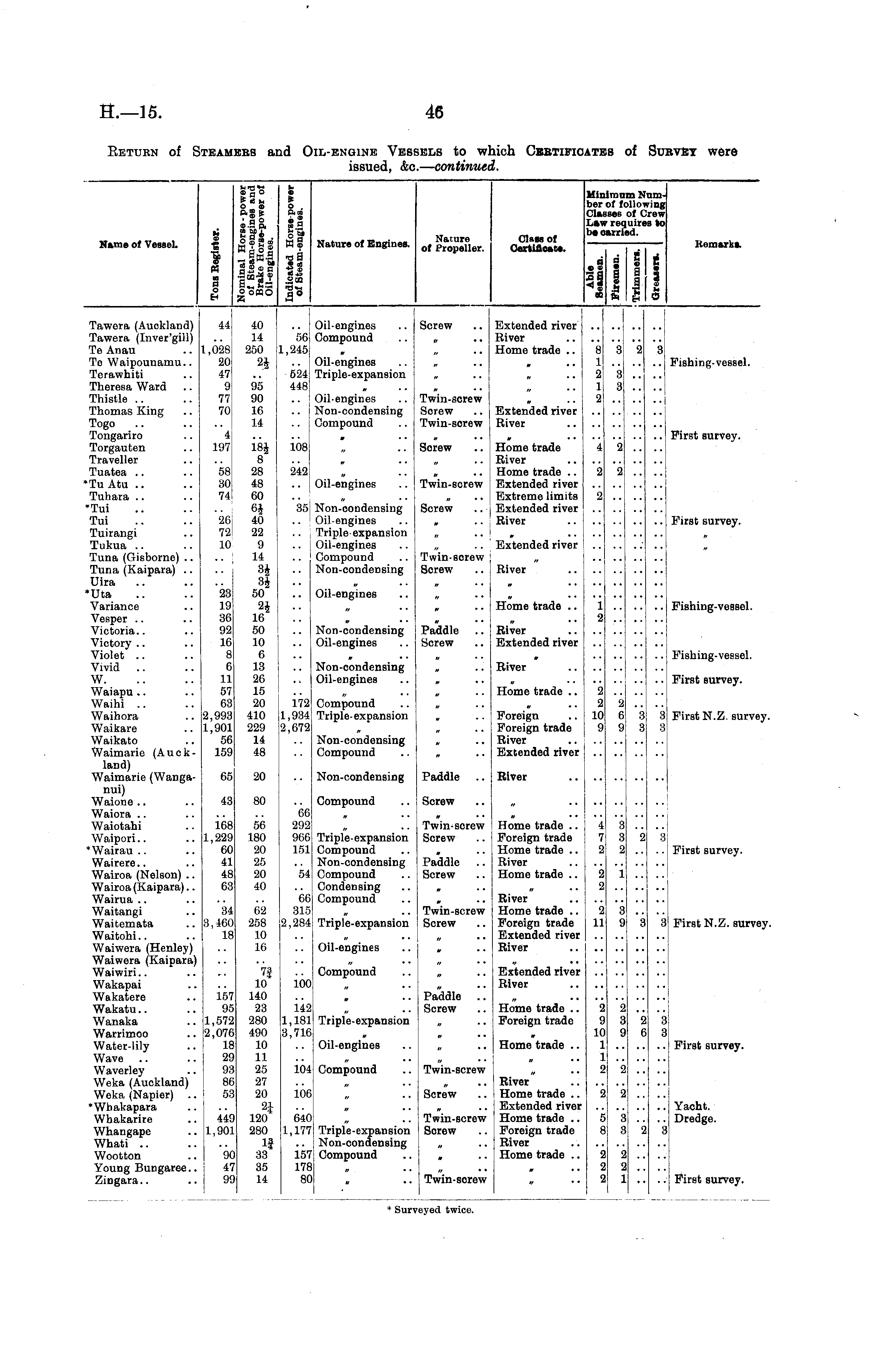 Return of Steamers and Oil-engine Vessels to which Certificates of Survey were issued, &c. — continued.