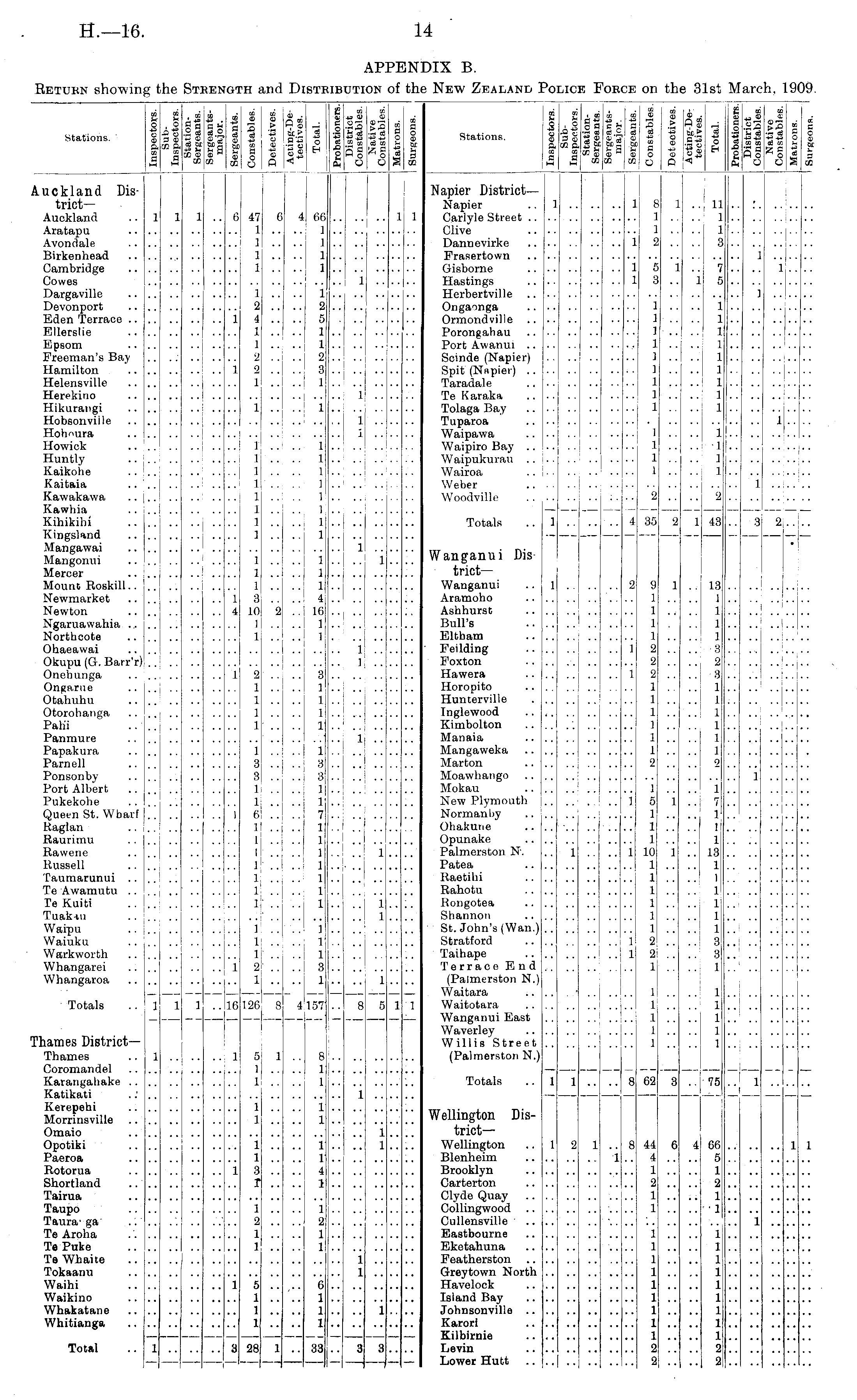 APPENDIX B. Return showing the Strength and Distribution of the New Zealand Police Force on the 31st March, 1909.