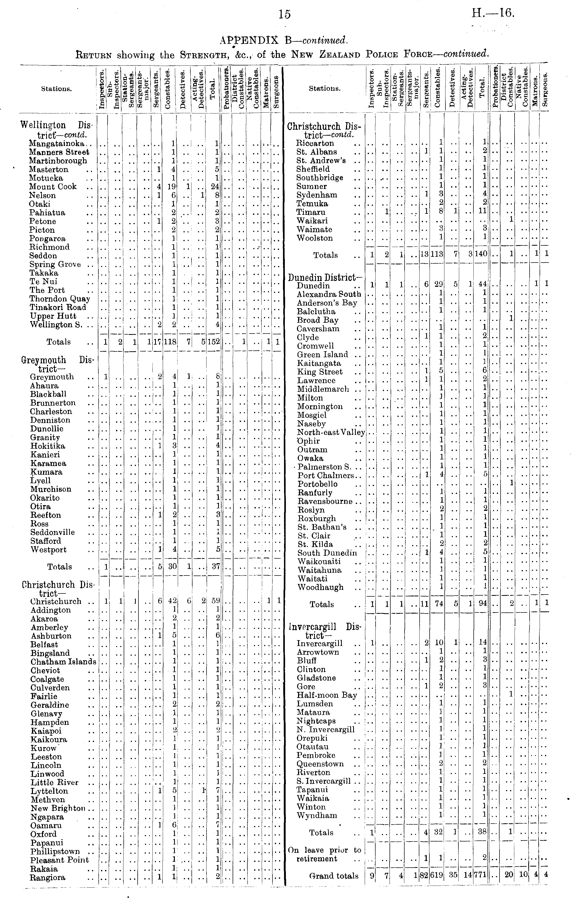 APPENDIX B— continued. Return showing the Strength, &c., of the New Zealand Police Force— continued.