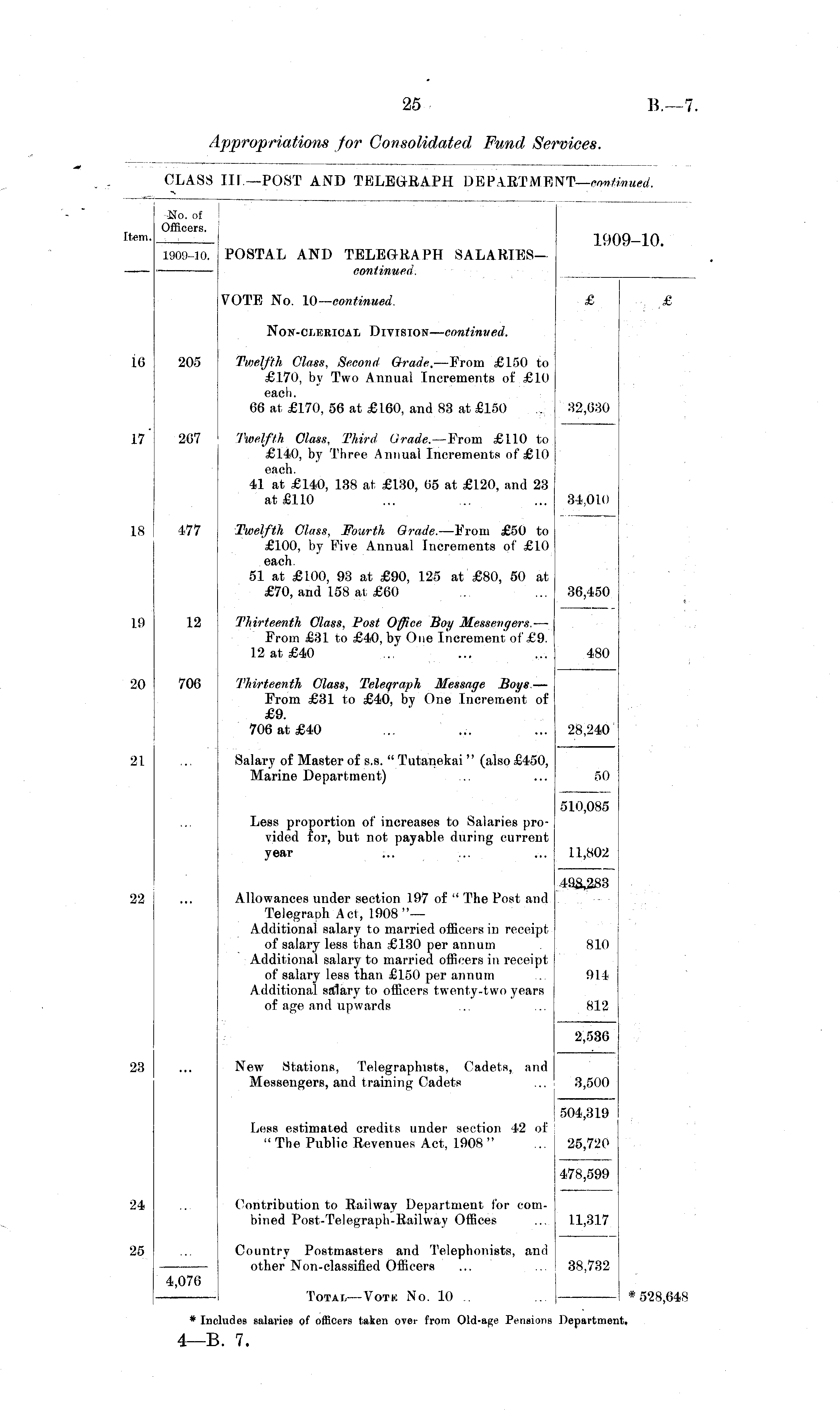 CLASS III.—POST AND TELEGRAPH DEPARTMENT— continued.