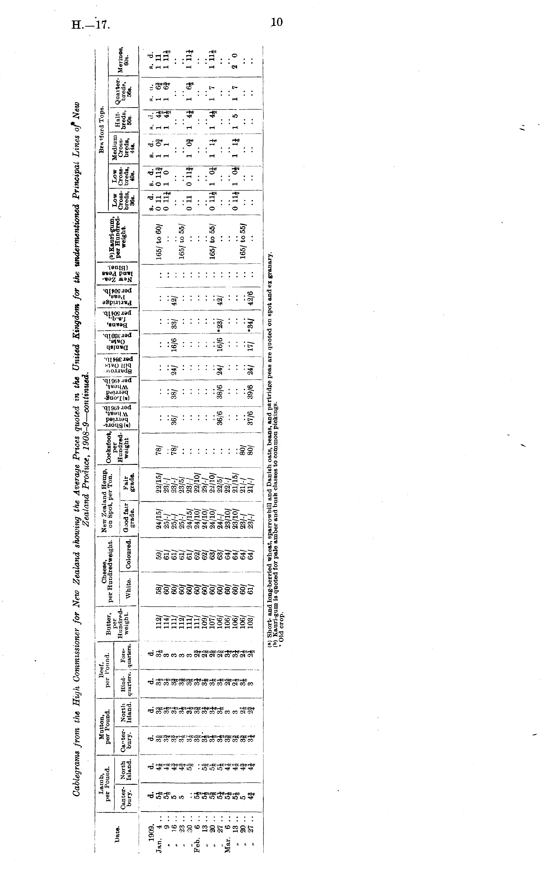 Cablegrams from the High Commissioner for New Zealand showing the Average Prices quoted in the United Kingdom for the undermentioned Principal Lines of New Zealand Produce, 1908-9 — continued.