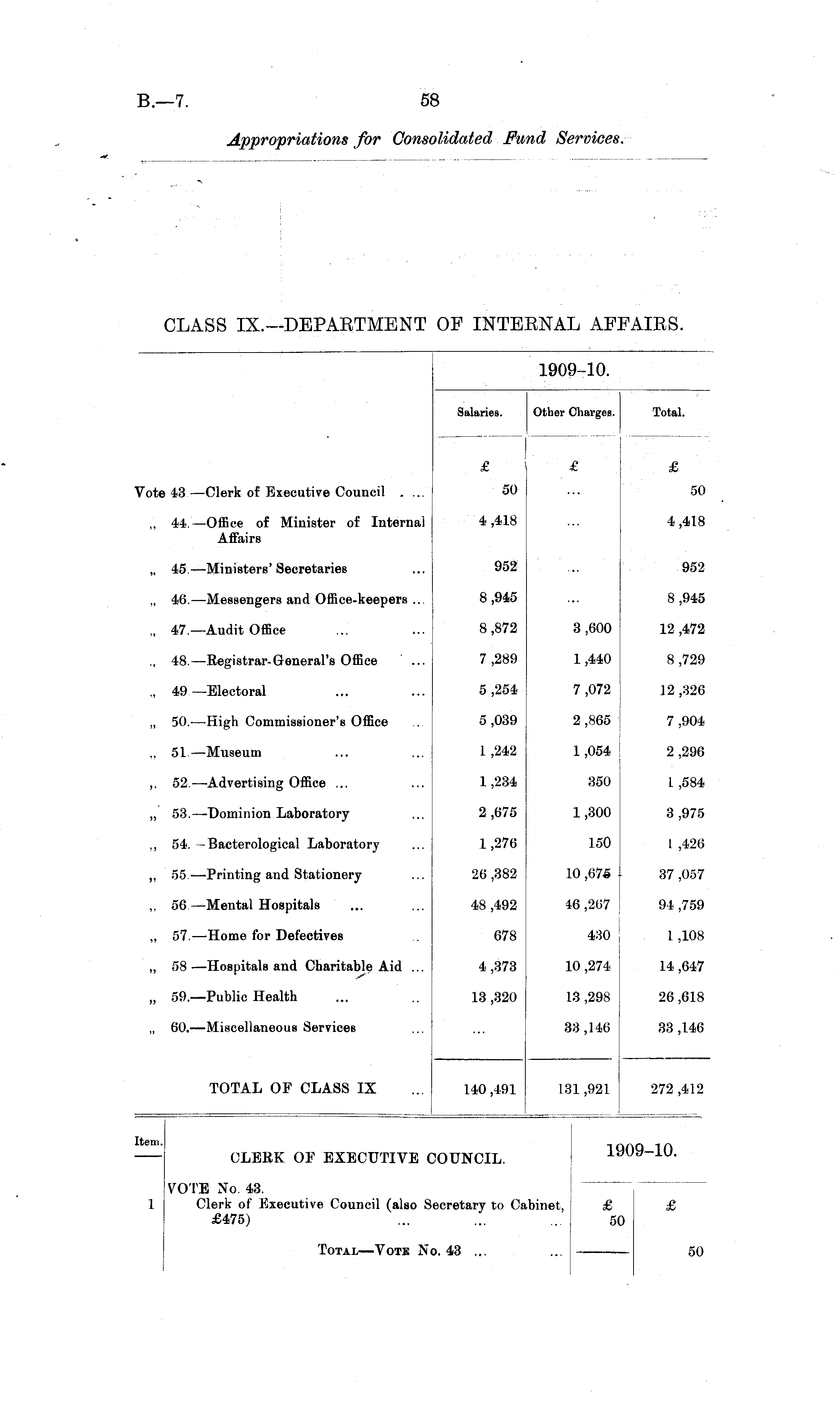 CLASS IX.—DEPARTMENT OF INTERNAL AFFAIRS.