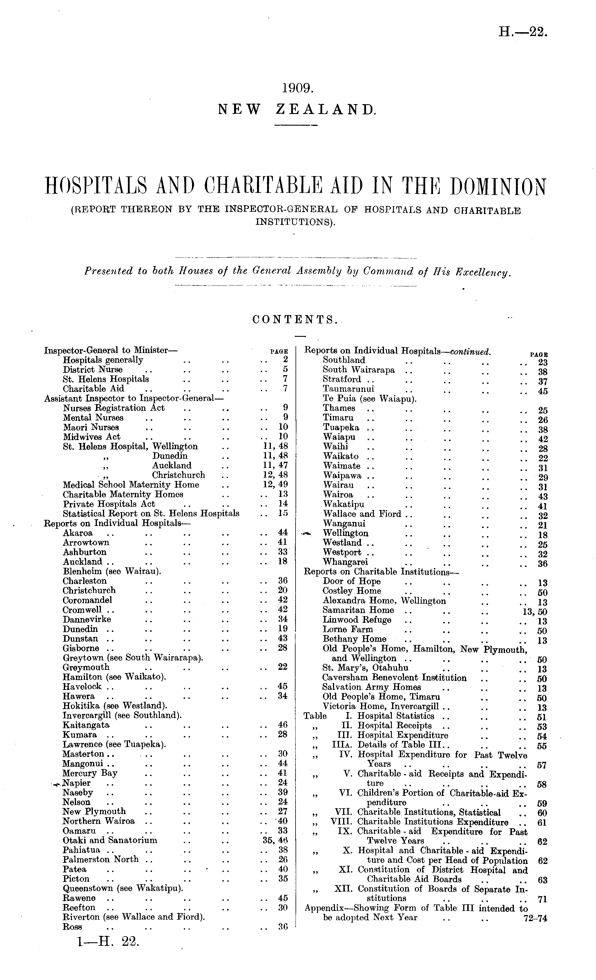 Reports on Individual Hospitals— continued. PAQE Southland .. .. .. 23 South Wairarapa .. .. .. .. 38 Stratford .. .. .. ~ .. 37 Taumarunui .. .. .. .. 45 Te Puia (see Waiapu). Thames .. .. .. .. 25 Timaru .. .. .. ~ .. 26 Tuapeka .. .. .. .. .. 38 Waiapu .. .. .. ~ 42 Waihi .. .. .. .. 28 Waikato .. .. .. .. 22 Waimate .. .. .. .. .. 31 Waipawa .. .. .. .. 29 Wairau .. .. .. ~ .. 31 Wairoa .. .. .. .. .. 43 Wakatipu .. .. .. 41 Wallaco and Fiord .. .. .. .. 32 Wanganui .. .. .. 21 «*. Wellington .. .. .. .. 18 Westland .. .. .. .. .. 25 Westport .. .. .. .. 32 Whangarei .. .. .. .. 36 Reports on Charitable Institutions— Door of Hope .. .. .. .. 13 Costley Home .. .. .. .. 50 Alexandra Home, Wellington .. .. 13 Samaritan Home .. .. .. 13 50 Lin wood Refuge .. .. .. ..13 Lome Farm .. .. .. ..50 Bethany Home .. .. .. ..13 Old People's Home, Hamilton, New Plymouth, and Wellington .. .. .. .. 50 St. Mary's, Otahuhu .. .. .! 13 Caversham Benevolent Institution .. .. 50 Salvation Army Homes .. .. .. 13 Old People's Home, Timaru .. .. 50 Victoria Home, Invercargill .. .. .. 13 Table I. Hospital Statistics .. .. .. 51 „ 11. Hospital Receipts .. .. .. 53 ~ 111. Hospital Expenditure .. .. 54 „ lIIa. Details of Table 111.. .. ..55 ~ IV. Hospital Expenditure for Past Twelve Years .. .. .. .. 57 „ V. Charitable - aid Receipts and Expenditure .. .. .. .. 58 ~ VI. Children's Portion of Charitable-aid Expenditure .. .. .. 59 „ VII. Charitable Institutions, Statistical .. 60 ~ VIII. Charitable Institutions Expenditure .. 61 „ IX. Charitable - aid Expenditure for Past Twelve Years .. .. 62 „ X. Hospital and Charitable - aid Expenditure and Cost per Head of Population 62 ~ XL Constitution of District Hospital and Charitable Aid Boards .. 63 ~ XII. Constitution of Boards of Separate Institutions .. .. 71 Appendix—Showing Form of Table 111 intended to be adopted Next Year .. .. 72-74