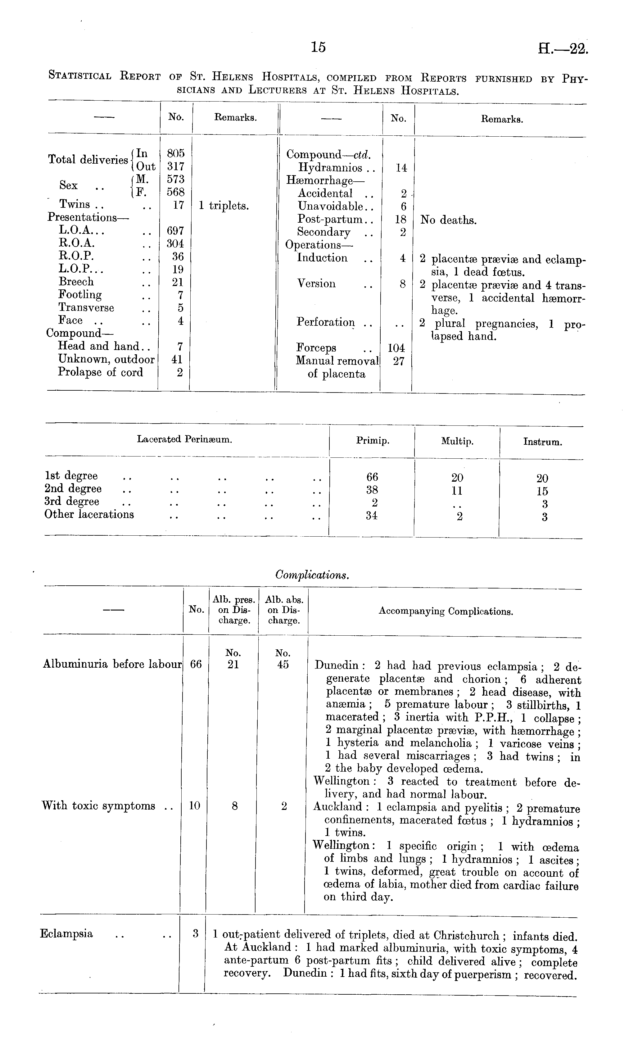 Statistical Report of St. Helens Hospitals, complied from Reports furnished by Physicians and Lecturers at St. Helens Hospitals.