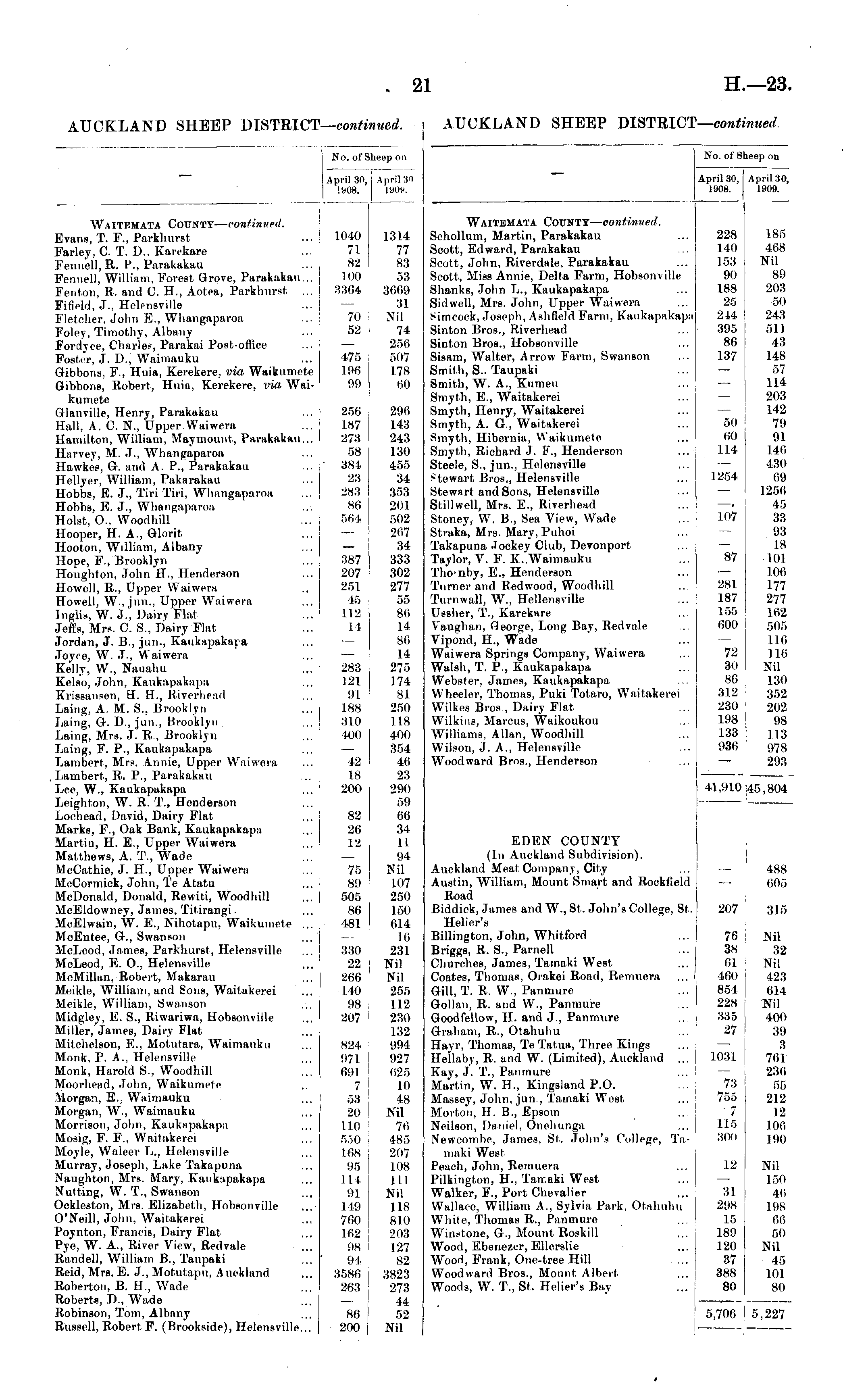 No. of Sheep oti April 30, Aprils 1908. I90H. April 30 I DOW. WAITEMATA CoUNTr — continued. Evans, T. F., Parkhuret Farley, C. T. D.. Karekare Fennell, R. P., Parakakau Fennell, William, Forest Grove, Parakakau.., Fenton, R. and C. H., Aotea, Parkhurst ... Fifield, J., Helensville Fletcher, John E., Whangaparoa Foley, Timothy, Albany Fordyce, Charles, Parakai Post-office Foster, J. I)., Waimauku Gibbons, F., Huia, Kerekere, via Waikumete Gibbons, Robert, Huia, Kerekere, via Waikumete Glanville, Henry, Parakakau ... Hall, A. C. N., Upper Waiwera Hamilton, William, Maymount, Parakakau .. Harvey, M. J., Whangaparoa Hawkes, G. and A. P., Parakakau Hellyer, William, Pakarakau Hobbs, E. J., Tiri Tiri, Whangaparoa Hobbs, E. J., Whangaparoa Hoist, O., Woodhill Hooper, H. A., Glorit Hooton, William, Albany Hope, F., Brooklyn Houghton, John H., Henderson Howell, R., Upper Waiwera Howell, W., jun., Upper Waiweia Inglis, W. J., Dairy Flat ... Jeffs, Mm. C. S., Dairy Flat Jordan, J. B., jun., Kaukapakara Joyce, W. J , Waiwera ... Kelly, W., Nauahu Kelso, John, Kaukapakapa Kriesansen, H. H., Riverhead ... j Laing, A. M. 8., Brooklyn ... Laing, d. D., jun., Brooklyn Laing, Mrs. J. R , Brooklyn Laing, F. P., Kaukapakapa ... Lambert, Mrs. Annie, Upper Waiwera Lambert, R. P., Parakakau Lee, W., Kaukapakapa ... I Leighton, W. R. T., Henderson Loehead, David, Dairy Flat Marks, F., Oak Bank, Kaukapakapa Martin, H. E., Upper Waiwera Matthews, A. T., Wade McCathie, J. H., Upper Waiwera ... McCormick, John, Te Atatu McDonald, Donald, Rewiti, Woodhill McEldowney, James, Titirangi. McElwain, W. E., Nihotapu, Waikumete ... MeEntee, G-., Swanson McLeod, James, Parkhuret, Helensville ... ' McLeod, ffi. O., Helensville McMillan, Robert, Makarau Moikle, William, and Sons, Waitakerei Meikle, William, Swanson Midgley, E. S., Riwariwa, Hobsonville Miller, James, Dairy Flat Mitchelson, E., Motutara, Waimauku Monk, P. A., Helensville Monk, Harold 8., Woodhill Moorhead, John, Waikumete Morgan, H.j Waimauku Morgan, W., Waimauku Morrison, John, Kaukarmkapa Mosig, F. F., Waitakerei Moyle, Waieer L., Helensville Murray, Joseph, Lake Takapuna Naughton, Mrs. Mary, Kaukapakapa Nutting, W. T., Swanson Ockleston, Mrs. Elizabeth, Hobsonville O'Neill, John, Waitakerei Poynton, Francis, Dairy Flat Pye, W. A., River View, Redvale Randell, William B., Taupaki Reid, Mrs. E. J., Motutapu, Auckland Roberton, B. H., Wade Roberts, D., Wade Robinson, Tom, Albany Russell, Robert F. (Brookside), Helensville... 1040 71 82 100 3364 1314 77 83 53 36C9 31 Nil 74 2r>(i 507 178 (JO 70 52 475 196 99 250 187 273 58 384 23 283 86 f>64 296 143 243 130 455 34 353 201 502 2<i7 34 333 302 277 55 86 14 I 86 14 275 174 SI 250 118 400 354 46 23 290 59 86 34 11 94 Nil 1(17 250 150 614 16 231 Nil Nil 255 112 230 132 994 927 625 10 48 Nil 76 485 207 10S 111 Nil 118 810 203 127 82 3823 273 44 52 Nil 387 207 251 48 112 1 I 283 121 91 188 310 400 42 18 200 82 26 12 75 8!) 505 86 481 330 22 266 140 98 207 824 971 091 7 53 20 110 530 168 !).-, I 1 I 91 149 760 162 98 94 3586 263 86 200