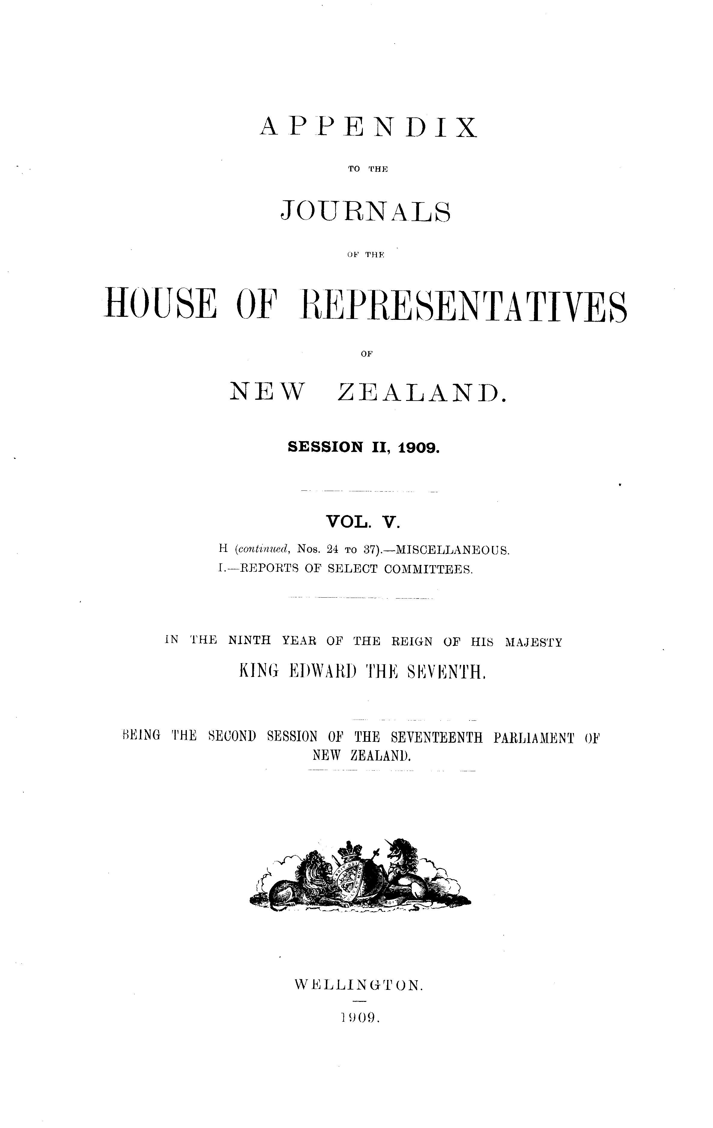 APPENDIX TO THE JOURNALS OF THE HOUSE OF REPRESENTATIVES OF NEW ZEALAND. SESSION II, 1909.