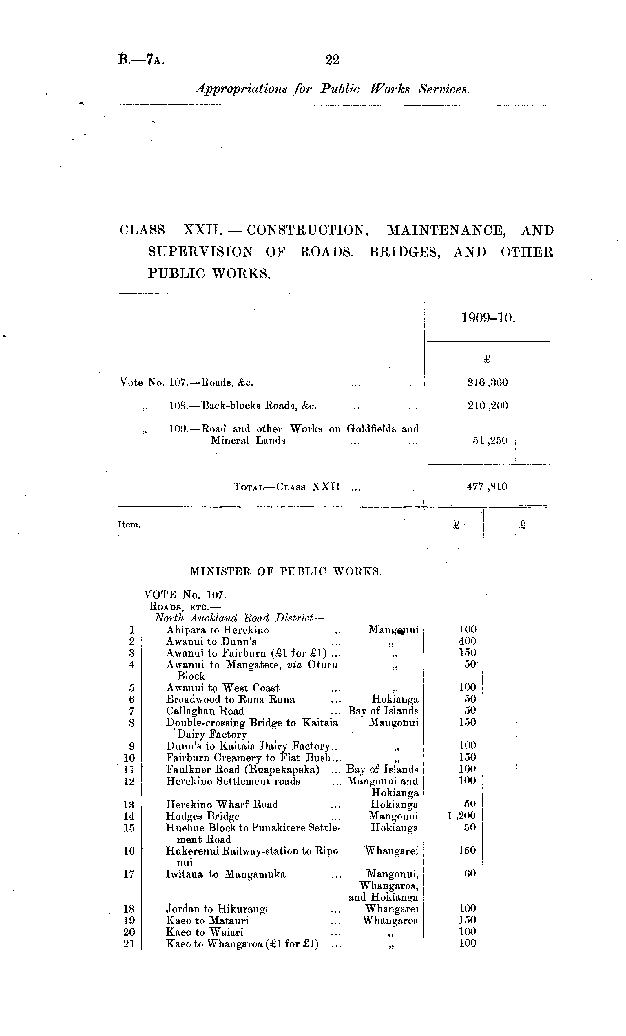 CLASS XXII.—CONSTRUCTION, MAINTENANCE, AND SUPERVISION OF ROADS, BRIDGES, AND OTHER PUBLIC WORKS.