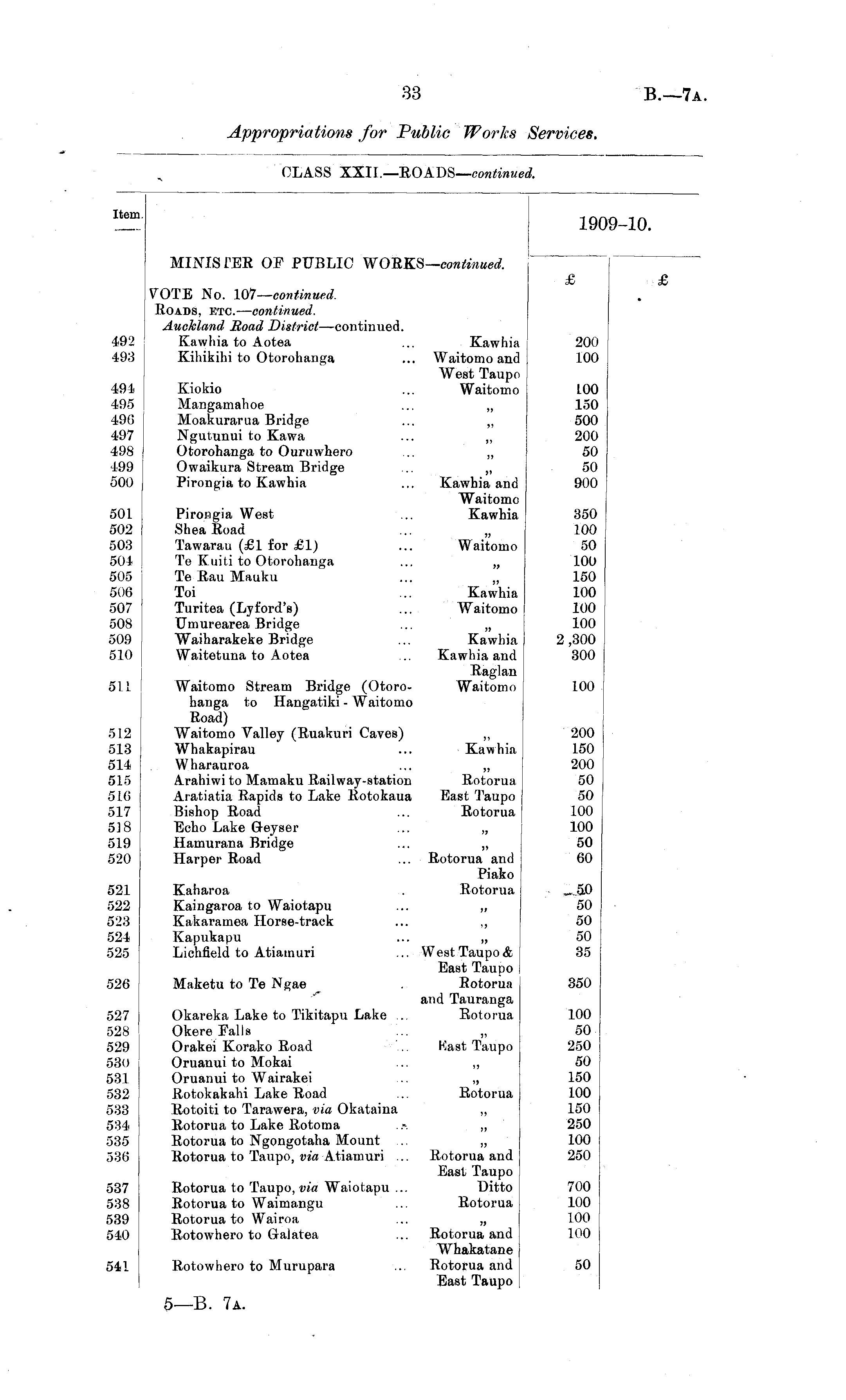 Item. 1909-10. MINISTER OF PUBLIC WORKS—continued. VOTE No. 107— continued. Roads, etc. — continued. Auckland Road District —continued. Kawhia to Aotea ... Kawhia Kihikihi to Otorohanga ... Waitomo and West Taupo Kiokio ... Waitomo Mangamaboe ... „ Moakurarua Bridge ... ,, Ngutunui to Kawa ... ,, Otorohanga to Ouruwhero ... „ Owaikura Stream Bridge ... „ Pirongia to Kawhia ... Kawhia and Waitomo Pirongia West ... Kawhia Shea Road ... „ Tawarau (£1 for £1) ... Waitomo Te Kuiti to Otorohanga ... „ Te Rau Mauku ... „ Toi ... Kawhia Turitea (Lyford's) ... Waitomo Umurearea Bridge ... „ Waiharakeke Bridge ... Kawhia Waitetuna to Aotea ... Kawhia and Raglan Waitomo Stream Bridge (Otoro- Waitomo hanga to Hangatiki - Waitomo Road) Waitomo Valley (Ruakuri Caves) ,, Whakapirau ... Kawhia Wharauroa ... „ Arahiwi to Mamaku Railway-station Rotorua Aratiatia Rapids to Lake Rotokaua East Taupo Bishop Road ... Rotorua Echo Lake Geyser ... „ Hamurana Bridge ... ,, Harper Road ... Rotorua and Piako Kaharoa . Rotorua Kaingaroa to Waiotapu ... „ Kakaramea Horse-track ... ,, Kapukapu ... „ Lichfield to Atiamuri ... West Taupo A East Taupo Maketu to Te Ngae Rotorua and Tauranga Okareka Lake to Tikitapu Lake ... Rotorua Okere Falls ... „ Orakei Korako Road Kast Taupo Oruanui to Mokai ... ,, Oruanui to Wairakei .. „ Rotokakahi Lake Road ... Rotorua Rotoiti to Tarawera, via Okataina ,, Rotorua to Lake Rotoma ..«* „ Rotorua to Ngongotaha Mount .. „ Rotorua to Taupo, via Atiamuri ... Rotorua and East Taupo Rotorua to Taupo, via Waiotapu ... Ditto Rotorua to Waimangu ... Rotorua Rotorua to Wairoa ... „ Rotowhero to Galatea ... Rotorua and Whakatane Rotowhero to Murupara ... Rotorua and East Taupo £ £ 492 493 200 100 494 495 496 497 498 499 500 100 150 500 200 50 50 900 501 502 503 501 505 506 507 508 509 510 350 100 50 100 150 100 100 100 2,300 300 511 100 512 513 514 515 516 517 518 519 520 200 150 200 50 50 100 100 50 60 521 522 523 524 525 50 50 50 50 35 526 350 527 528 529 530 531 532 533 534 535 536 100 50 250 50 150 100 150 250 100 250 537 538 539 540 700 100 100 100 541 50