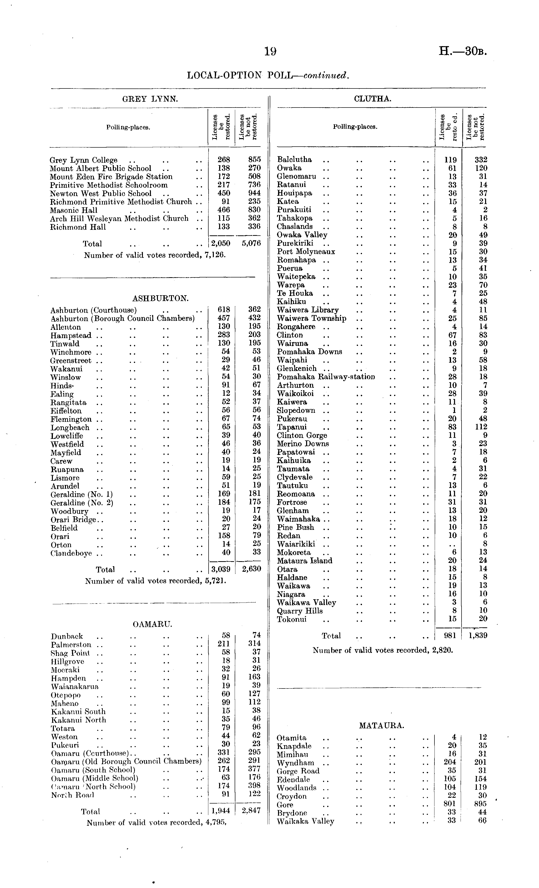 Polling-places. isi 3 B S irey Lynn College lount Albert Public School tount Eden Fire Brigade Station 'rimitive Methodist Schoolroom lewton West Public School tichmond Primitive Methodist Church .. Tasonie Hall Lrch Hill Wesleyan Methodist Church .. lichmond Hall 268 855 138 270 172 508 217 736 450 944 91 235 466 830 115 362 133 336 Total 2,050 5,076 Number of valid votes recorded, ,126. ASHBURTON. Ashburton (Courthouse) Ashburton (Borough Council Chambers) Allenton Hampstead Tinwald Winchmore .. Greenstreet .. Wakanui Winslow HirtdsEaling Rangitata Eiffelton Flemington Longbeach Lowcliffe Westfield Mayfield Carew Ruapuna Lismore Arundel Geraldine (No. 1) Geraldine (No. 2) Woodbury Orari Bridge.. Bolfield .. Orari Orton .. .. , .. Cbmdeboye 618 457 130 283 130 54 29 42 54 91 12 52 56 67 65 39 46 40 19 14 59 51 169 184 19 20 27 158 14 40 362 432 195 203 195 53 46 51 30 67 34 37 56 74 53 40 36 24 19 25 25 19 181 175 17 24 20 79 25 33 Total 3,039 2,630 Number of valid votes recorded, 5, ►,721OAMARU. 58 211 58 18 32 91 19 60 99 15 35 79 44 30 331 262 174 63 174 91 74 314 37 31 26 163 39 127 112 38 46 Dβ 62 23 295 291 377 176 398 122 Dunback Palmerston .. Shag Point .. Ilillgrove .MiuT.-i.ki Kampden Waianakarua Otepopo Marieno Kakanui South Kakanui North Totara Weston Pukeuri Oamaru (Ccurthouee).. Oamaru (Old Borough Council Chambers) Oamaru (South Sohool) Oamaru (Middle School) Oamaru'North School) North Hoa,fl To+al 1,944 I j 2,847 Number of valid votes recorded, 1. t,795.