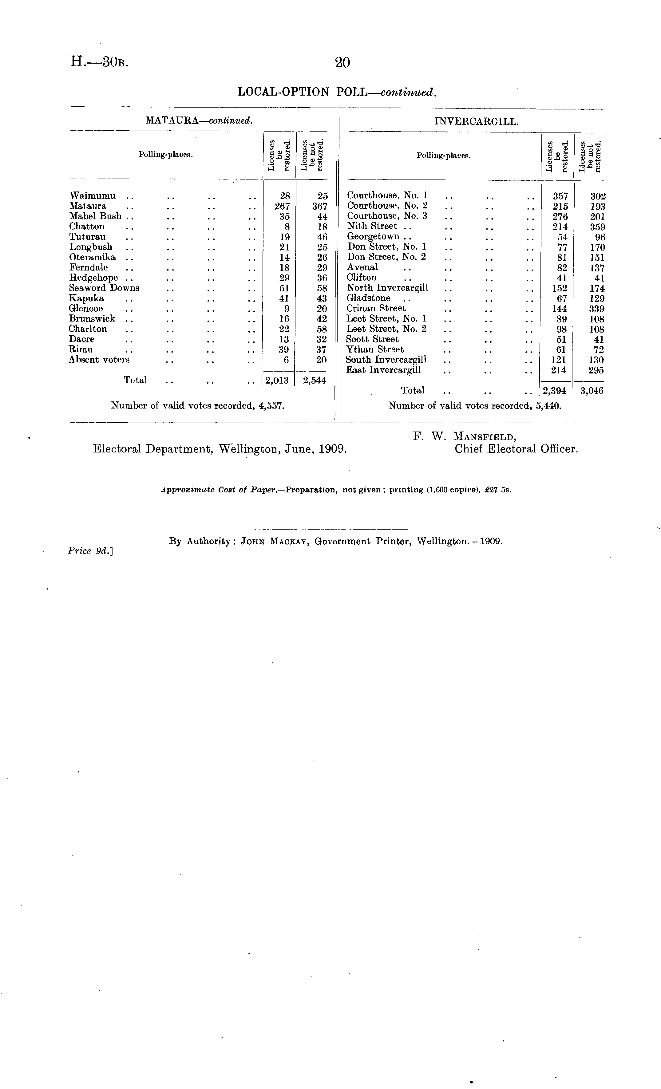 F. W. Mansfield, Electoral Department, Wellington, June, 1909. Chief Electoral Officer. Approximate Cost of Paper. —Preparation, not given ; printing (1,000 copieß), £27 ss.