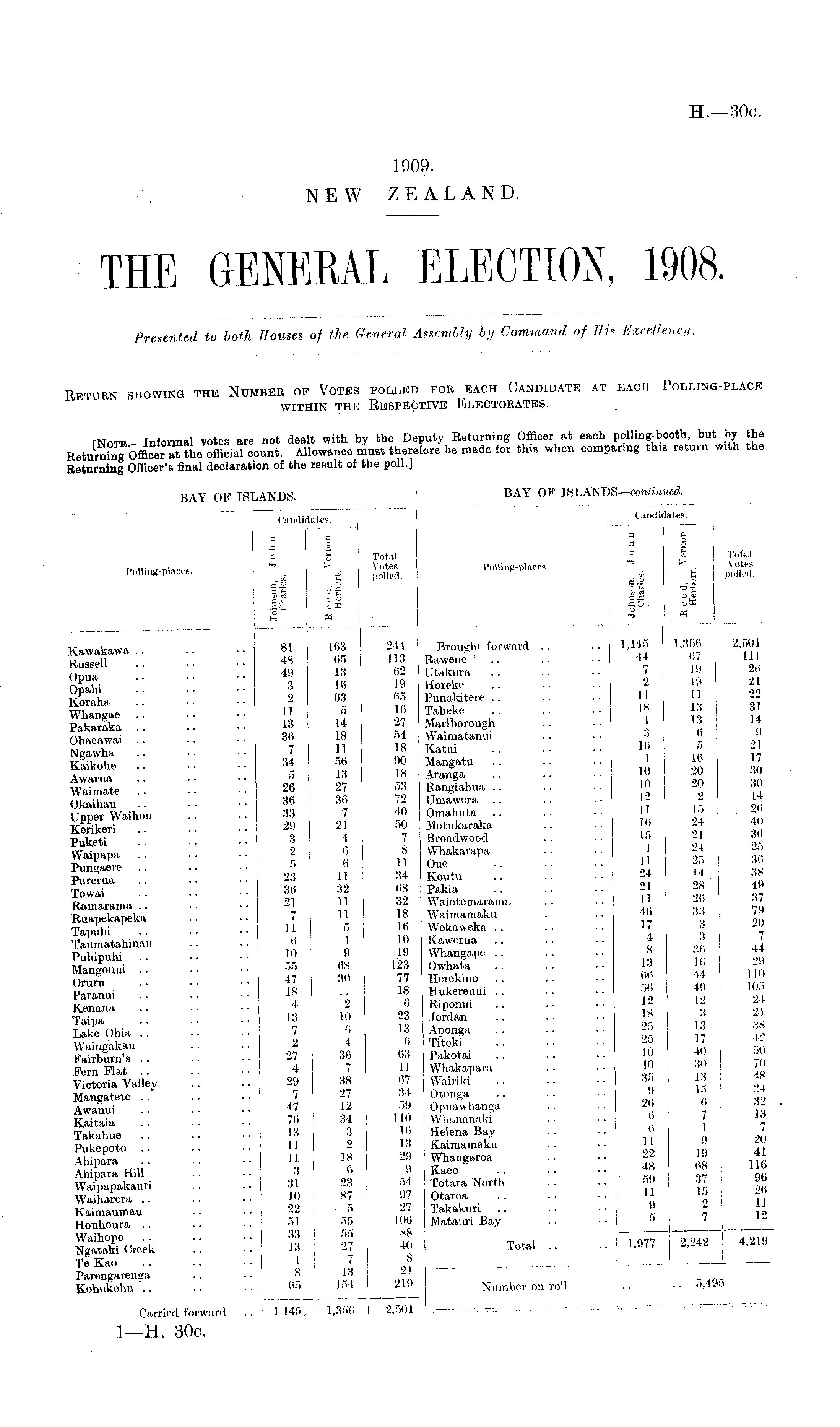 BAY OF IS! ,ANDS. BAY OF ISLANDS— continued. '.He.i Candida a dates. a c E Total > Votes £ polled. -*£ o a) •H W Candidates. ! * % I TotaJ Pollins-plnoos "~ . 0 , « t2 polled. II t| Polling-places. I s So c H5 i Kawakawa Russell Opua Opahi Koraha Whangae Pakaraka Ohaeawai Ngawha Kaikohe Awarua Waimate Okaihau Upper Waihou Kerikeri Puketi Waipapa Pungaere Purerua Towai Ramarama Ruapekapeka Tapuhi Taumatahinau Puhipuhi Mangonui .. Oruru Paranui Kenana Taipa Lake Ohia Waingakau Fairb urn's Fern Flat Victoria Valley Mangatete Awanui Kaitaia Takahue Pukepoto Ahipara Ahipara Hill Waipapakaui i Waiharera Kaimaumau Houhoura Waihopo Ngataki Creek Te Kao Parengarenga Kohukohu 81 48 49 3 2 11 13 36 7 34 5 26 36 33 29 3 2 5 23 36 21 7 11 li 10 55 47 i 18 A 7 2 27 4 29 7 47 70 13 11 ':', 31 10 22 51 33 13 1 8 65 103 244 65 113 13 02 16 19 63 05 5 16 14 27 18 54 11 18 50 90 13 18 27 53 36 72 7 40 21 50 4 7 6 8 6 11 11 34 32 08 11 32 11 18 5 10 4 10 9 19 08 123 30 77 18 2 8 10 23 6 13 4 6 36 03 7 11 38 07 27 34 12 59 34 110 3 10 2 13 18 29 6 9 23 54 87 97 • 5 27 55 106 55 88 27 40 7 8 13 2! 154 219 Brought forward .. .. 1,145 1,356 2,501 Uawene .. .. •■ 44 67 111 Utakura V 1!l 2,i Horeke 2 19 21 Punakitere .. .. • • 11 '-'- Taheke >* 13 31 Marlborough .. ■ ■ ' 13 1* Waimatanui • • • ■ 3 ° '' Katui 16 5 2 J, Mangatu .. .. •• ] 10 '' Aranga 10 20 30 Rangiahua .. .. • • 10 20 30 Umawera .. .. • ■ '2 14 Omahuta .. .. • ■ ' • lr » 2,i Motukaraka .. .. 16 24 40 Broadwood .. •. 16 21 36 Whakarapa .. •• ' 24 25 Que 11 25 36 Koutu 24 14 38 Pakia .. .. .. 21 28 49 Waiotemarama .. .. 1' |j7 Waimamaku .. •. 46 33 79 Wekaweka .. .. •• [ 7 3 20 Kawerua .. .. • • 4 3 I Whangape .. .. •• 8 36 ' 44 Owhata 13 6 29 Herekino 66 44 110 Hukerenui .. .. •• 56 49 105 Riponui .. .. • • '* -j Jordan .. •• •• ls :! \ Aponga 26 3 38 Titoki 2;, 17 42 Pakotai I" 40 50 Whakapara .. •• 40 30 70 Wairiki .. .. ■■ 35 13 : 48 Otonga •• •• » « | H Opuawhanga .. ■ • -" "I *J Whananaki •• •■ (i l i Helena Bay .. .. 6 1 7 Kaimamsku .. •• » ; f> Whangaroa . . • • 22 19 j Kaeo . ■■ 48 68 110 Totara North .. .. ' 59 37 96 Otaroa .. .. ..11 15 f' Takakuri 9 - ' Matauri Bay .. • • I r > _J__ li Total .. .. ~1,977 2,242 \ 4,219 l Number on roll ■ • • ■ r »,495 Carried forward 1.145 I 1,350 2.501