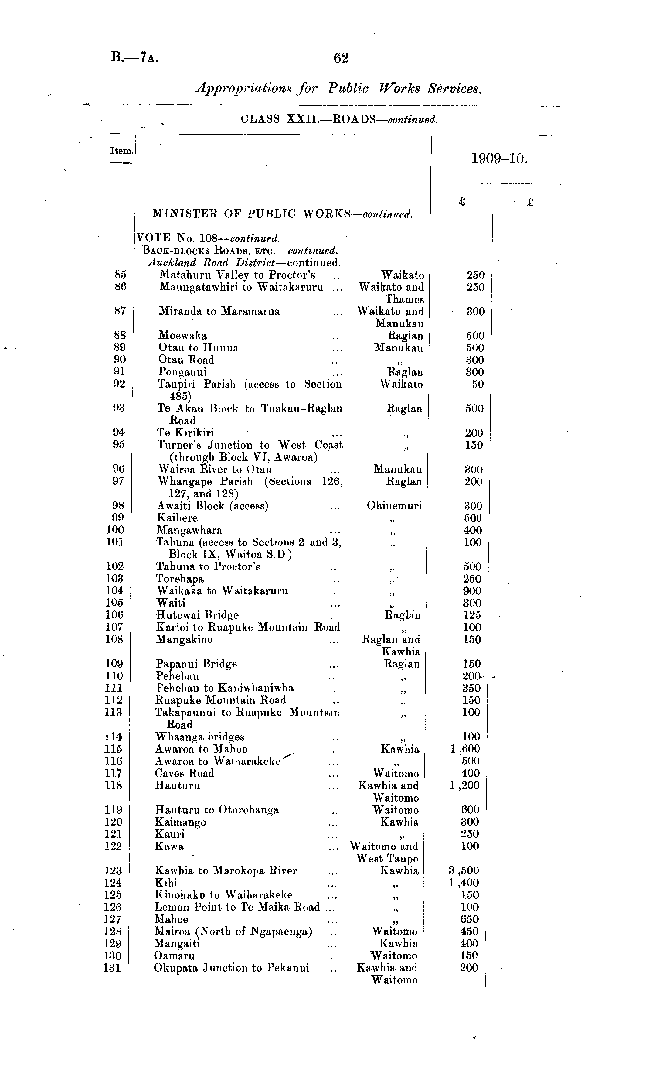 CLASS XXII.—ROADS— continued.