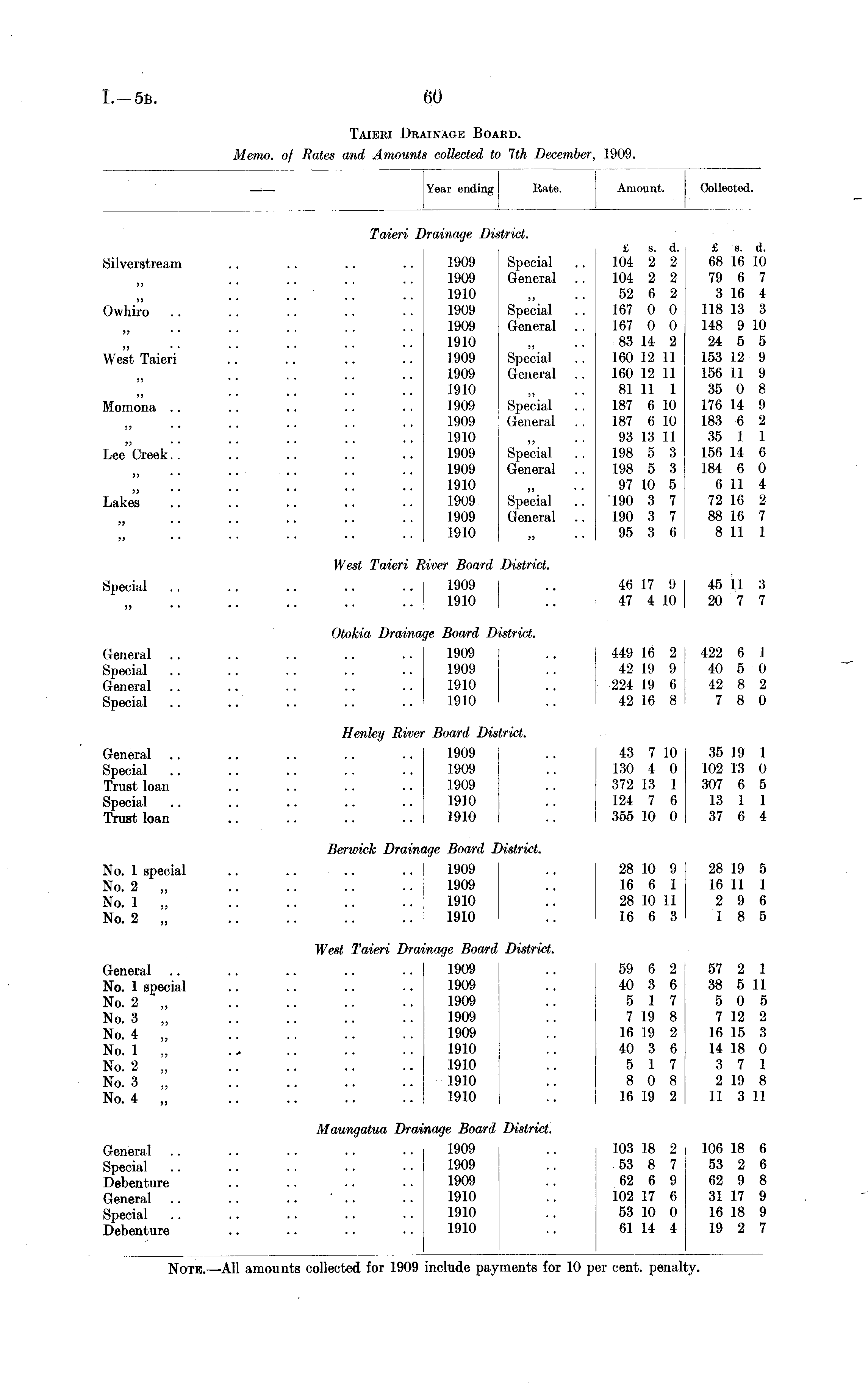 Taieri Drainage Board. Memo. of Rates and Amounts collected to 7th December, 1909.