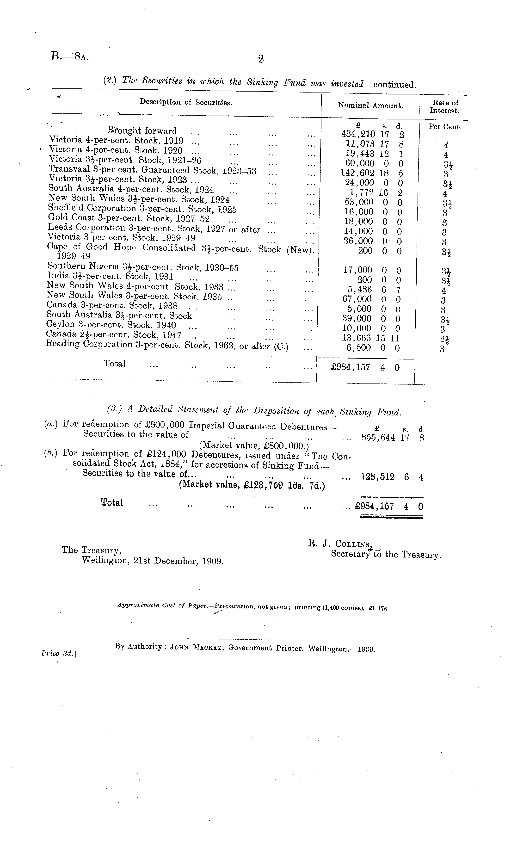 (3.) The Securities in which the Sinking Fund was invested— continued.