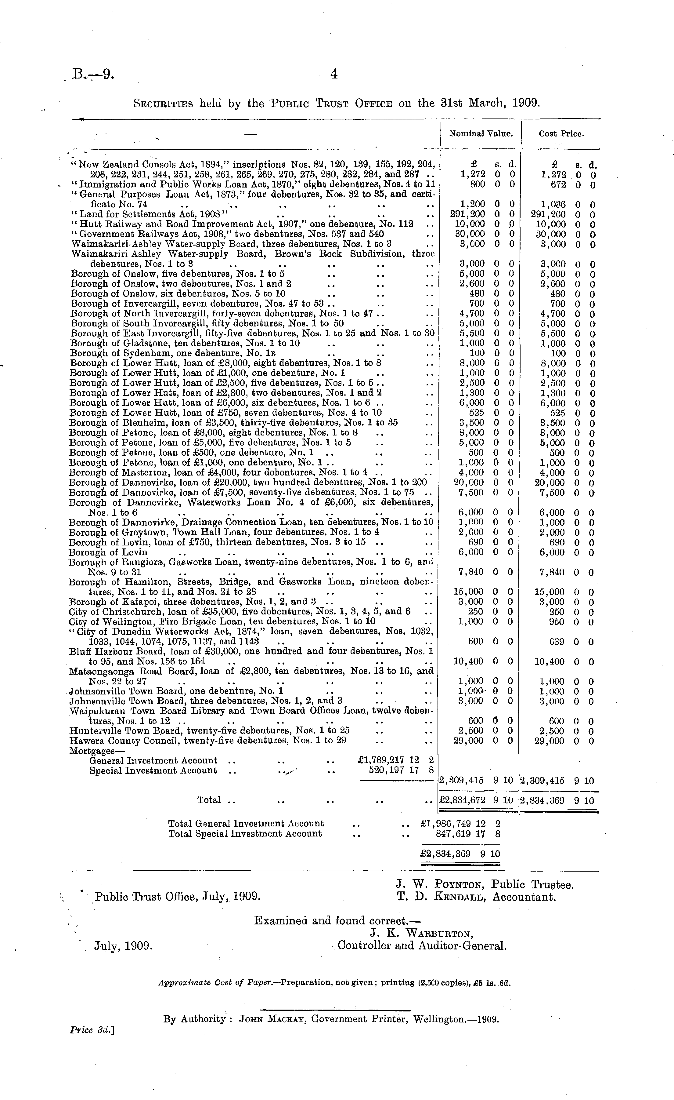 Securities held by the Public Trust Office on the 31st March, 1909.