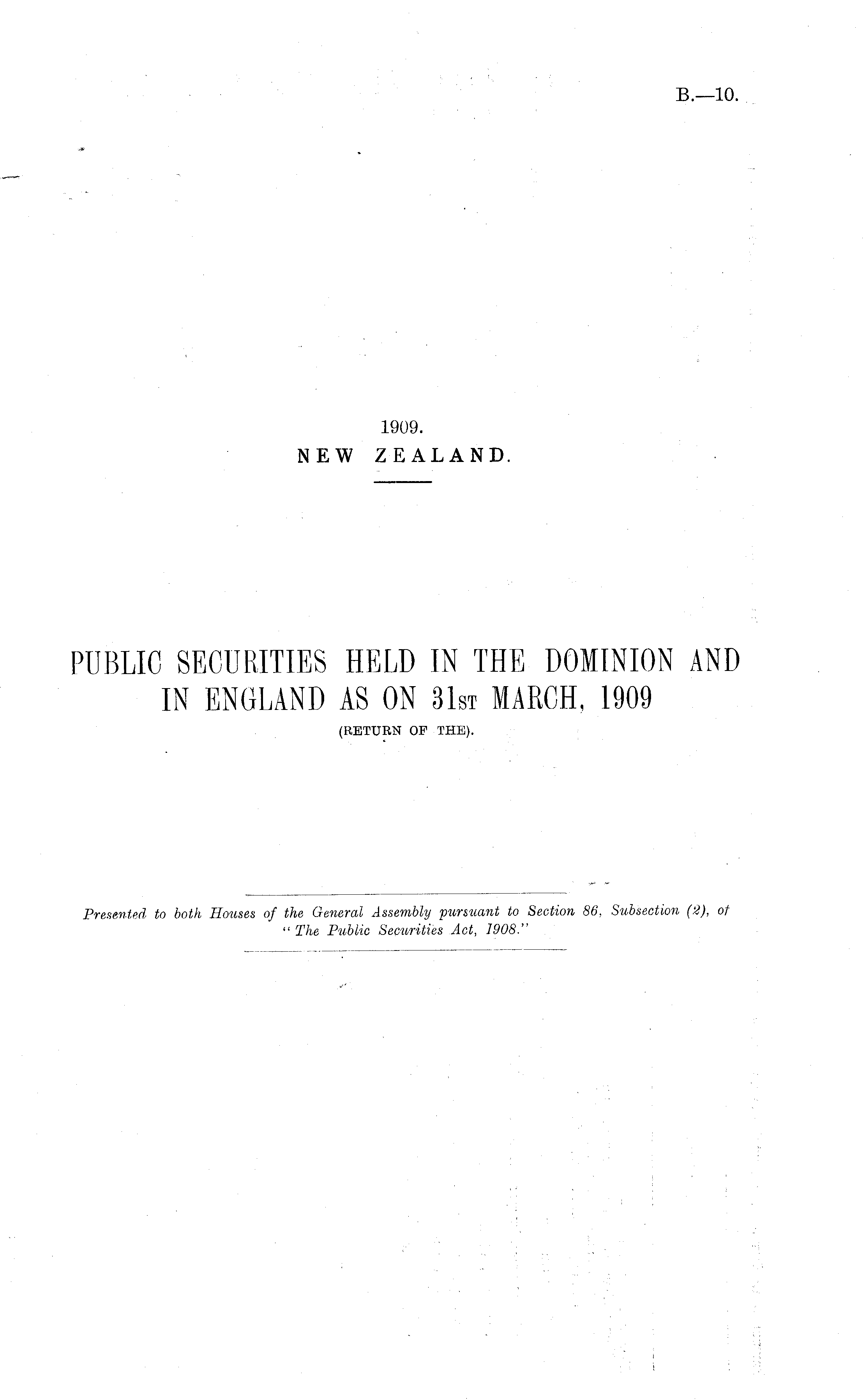 PUBLIC SECURITIES HELD IN THE DOMINION AND IN ENGLAND AS ON 31st MARCH, 1909 (RETURN OF THE).