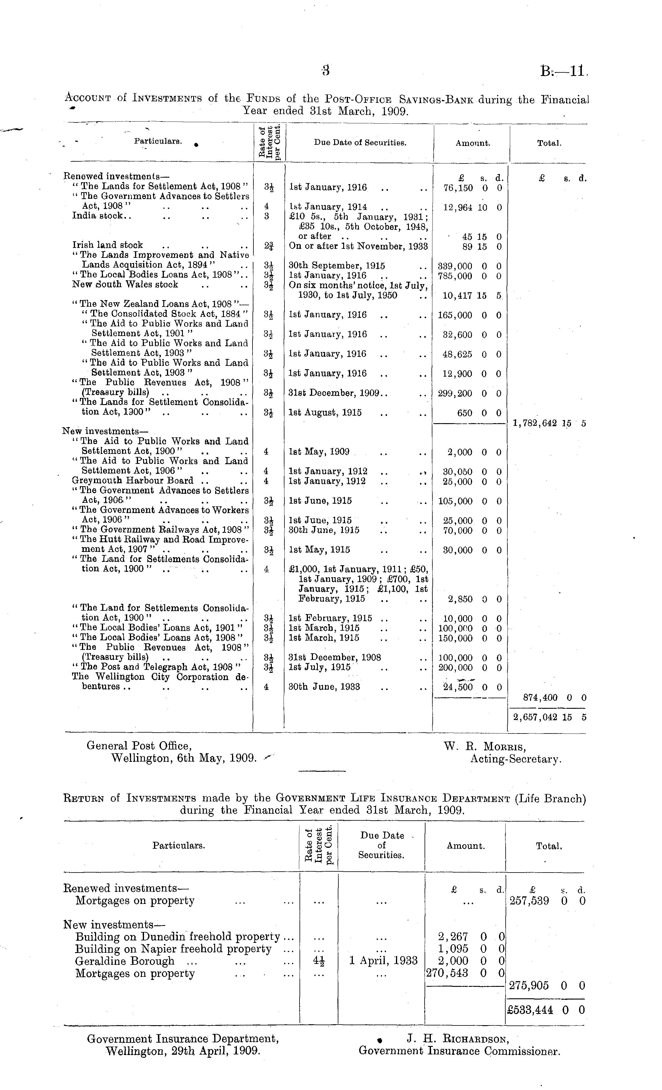 Account of Investments of the Funds of the Post-Office Savings-Bank during the Financial Year ended 31st March, 1909.