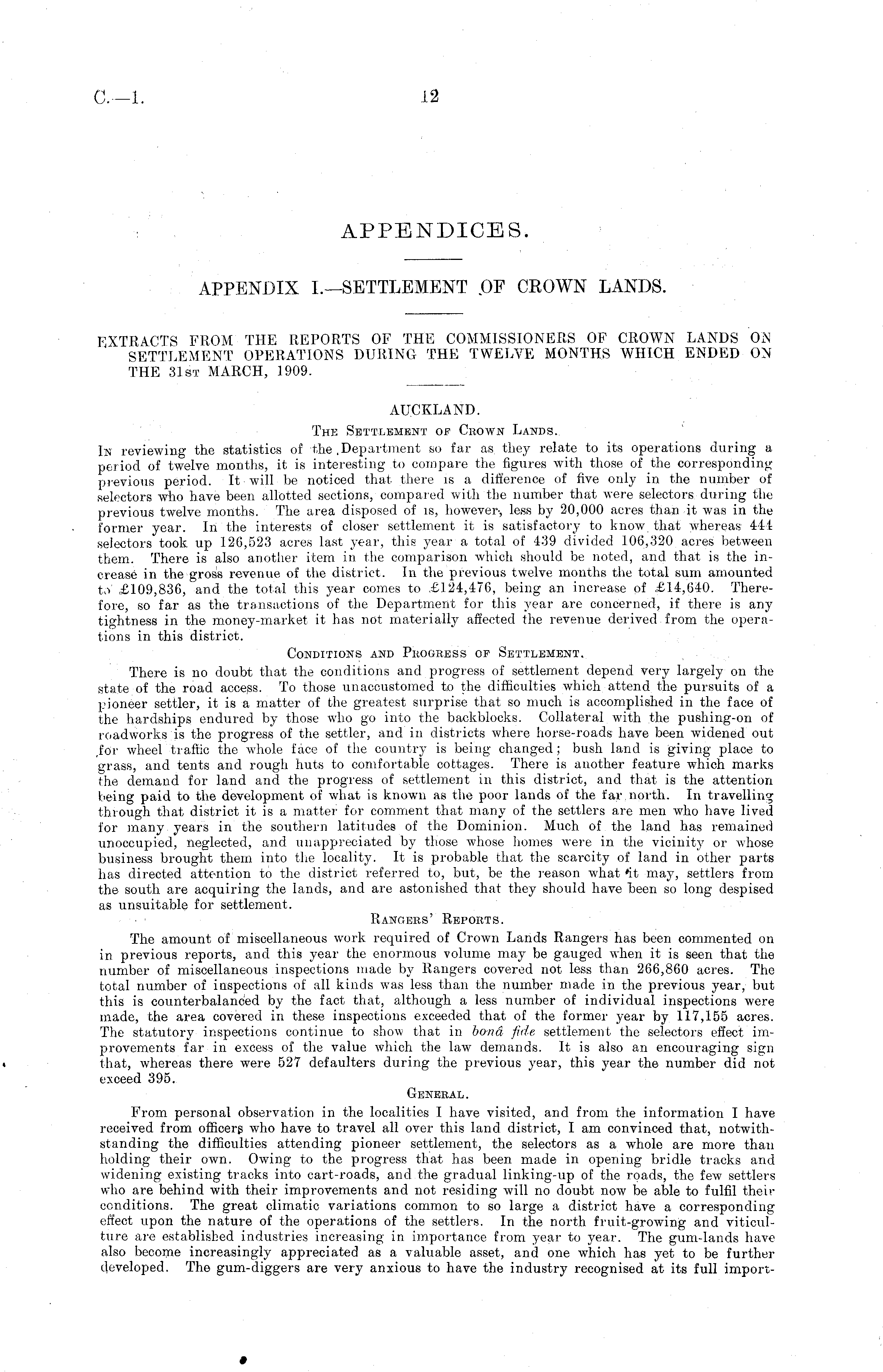 APPENDIX I.—SETTLEMENT OF GROWN LANDS.