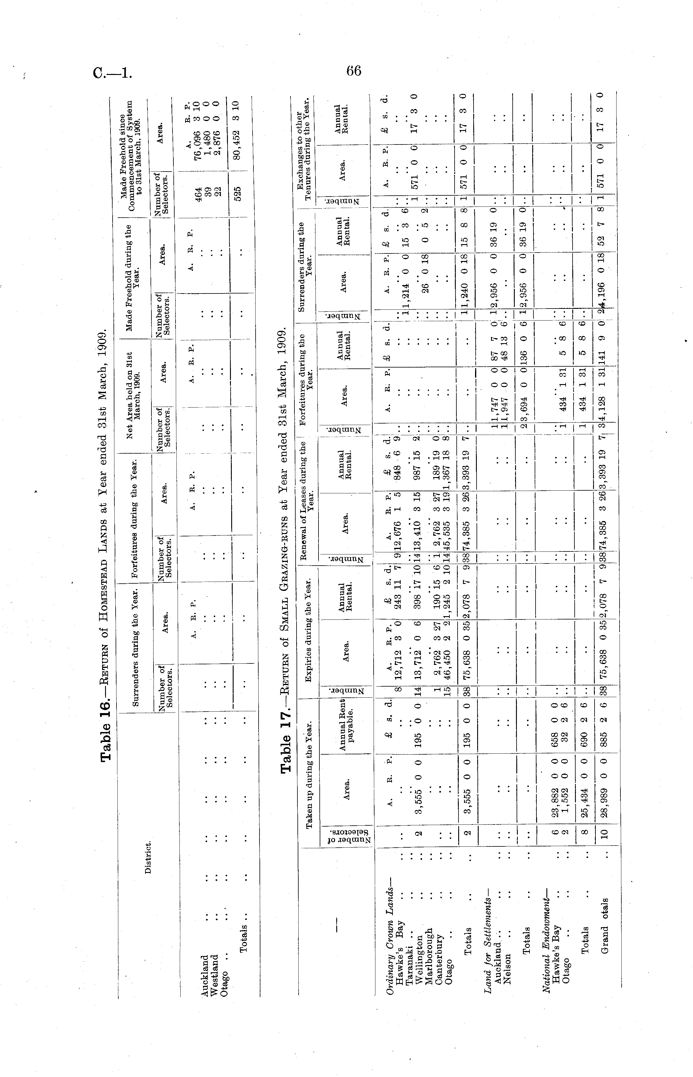 Table 16. —Return of Homestead Lands at Year ended 31st March, 1909.