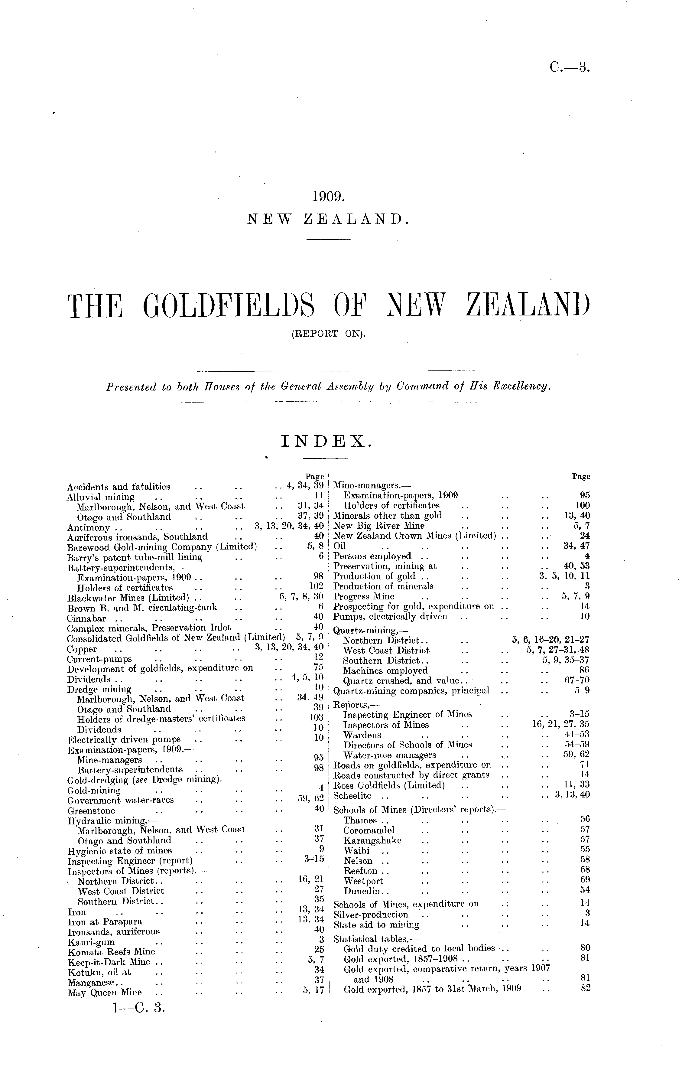 THE GOLDFIELDS OF NEW ZEALAND (REPORT ON).