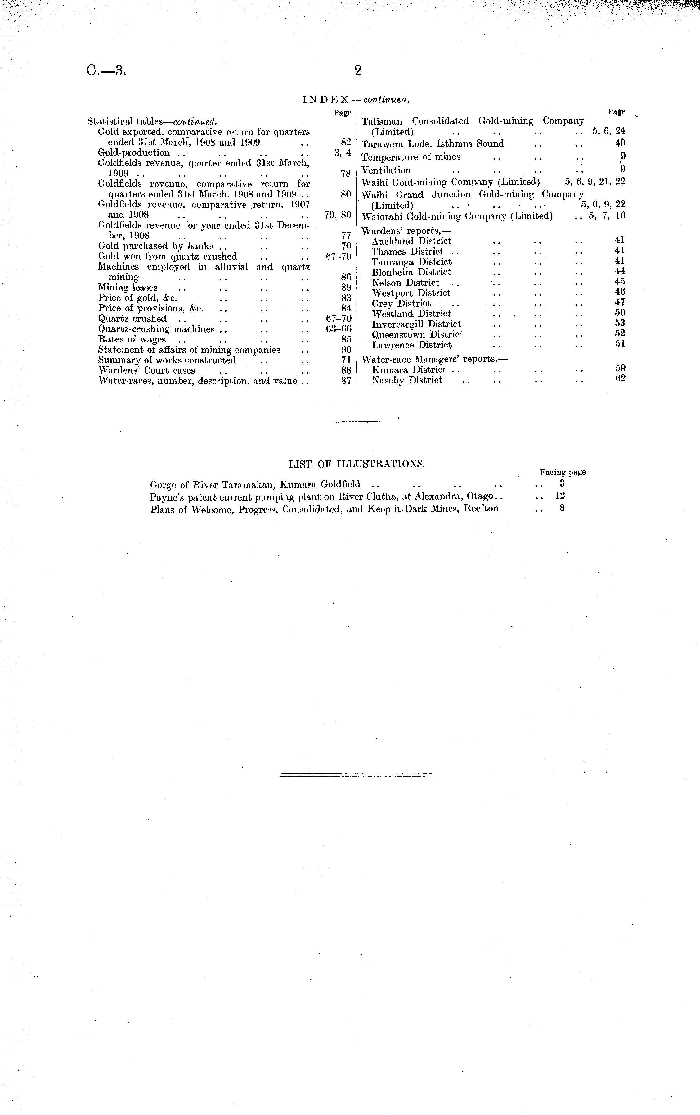 LIST OF ILLUSTRATIONS. Facing page Gorge of River Taramakau, Kumara Goldfield .. .. .. .. .. 3 Payne's patent current pumping plant on River Clutha, at Alexandra, Otago.. .. 12 Plans of Welcome, Progress, Consolidated, and Keep-it-Dark Mines, Reefton .. 8