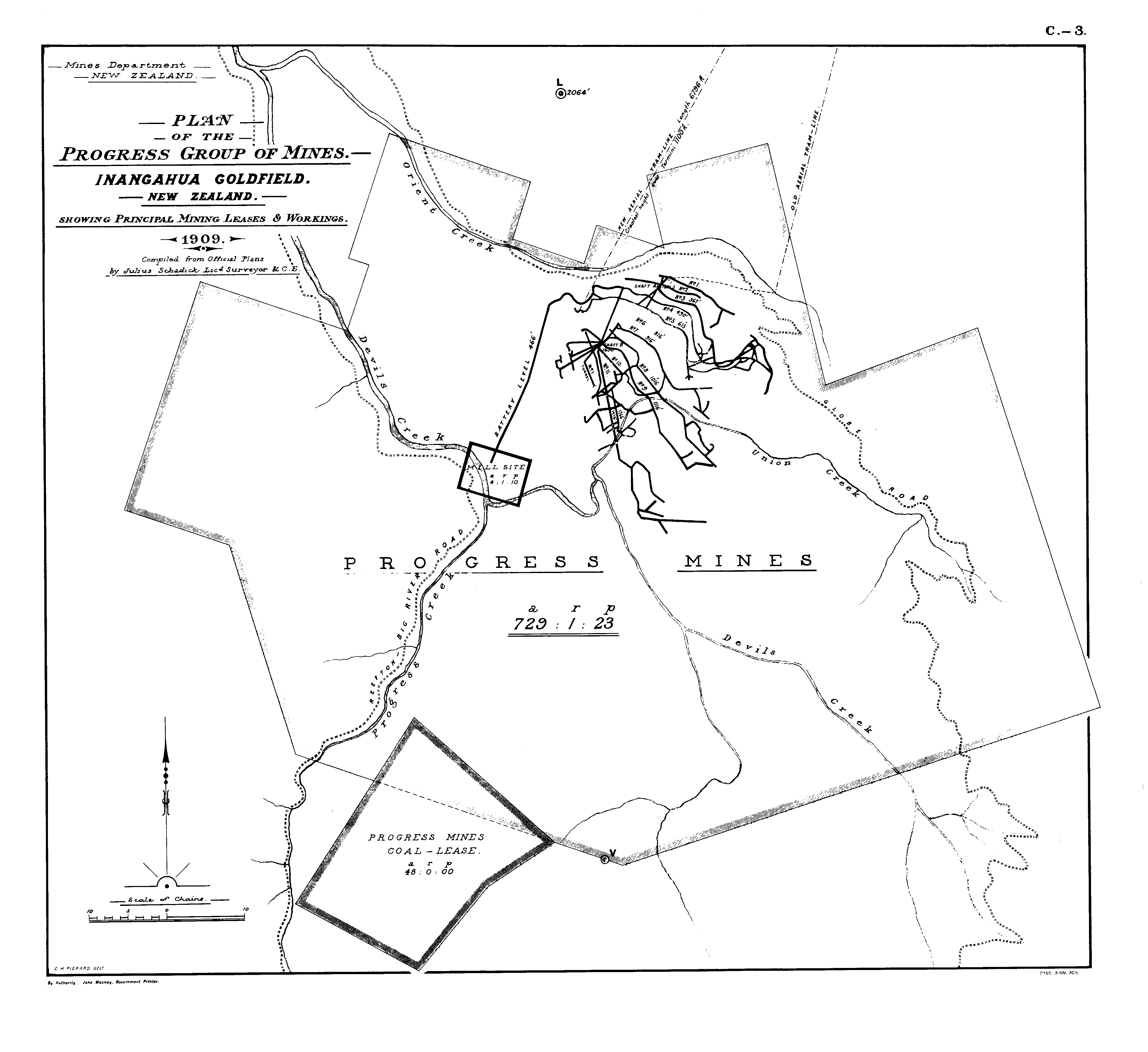 PLAN OF THE PROGRESS GROUP OF MINES. INANGAHUA GOLDFIELD. NEW ZEALAND. SHOWING Principal Mining Leases & Workings.