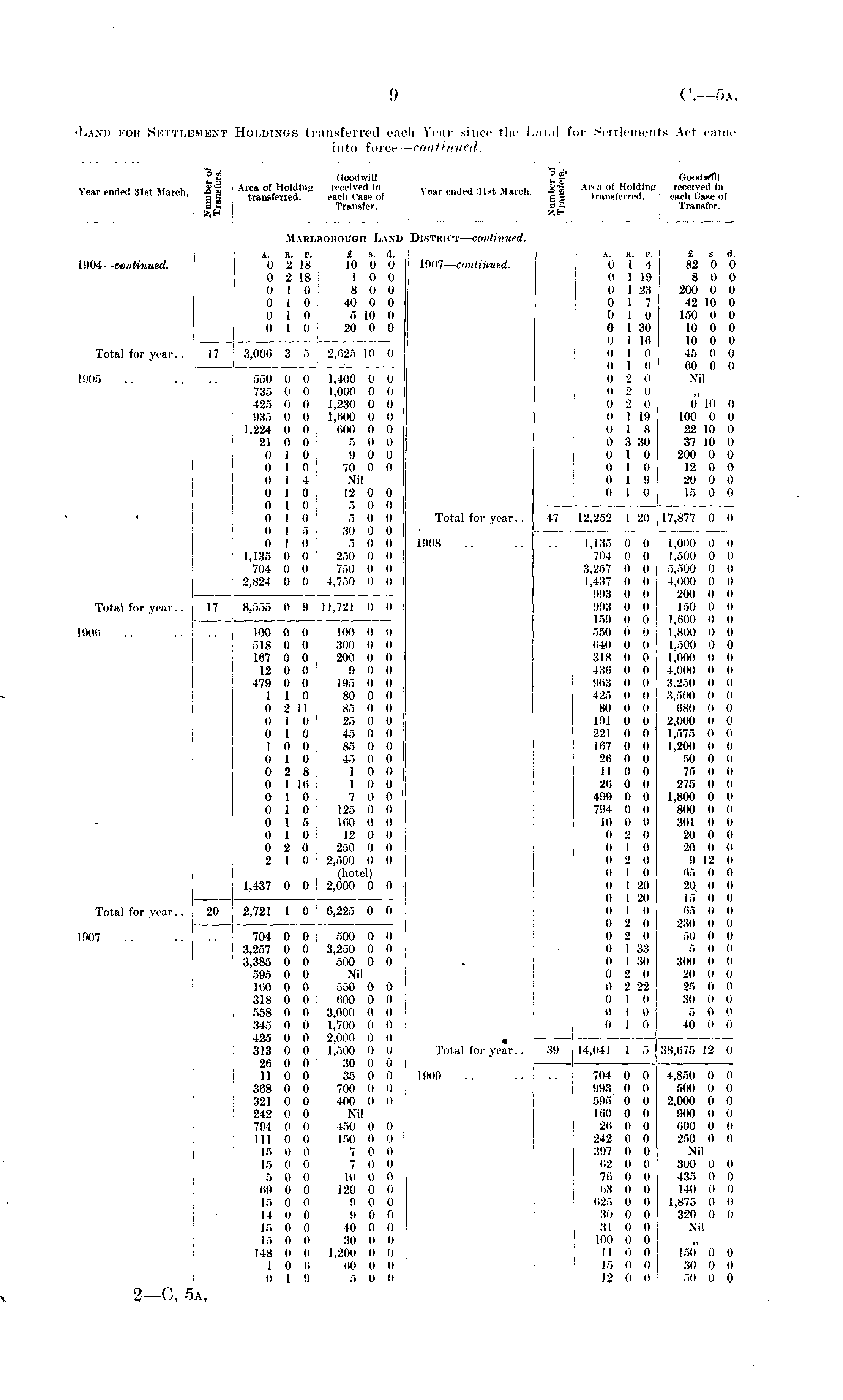 °C Goodwill Year ended Ills! March, If 5,2 j Transfer, u ~Z z B £ An a of Holding transferred. ni.isiwiii received in each Case of Transfer. Marlborough [jAnd District continued. £ s d. 82 0 0 8 0 0 200 0 0 42 10 0 150 0 0 10 0 0 10 0 0 15 (I (I 60 0 0 Xil A. R. P. £ S. d. | 1904— continued. o 2 18 10 0 0 i 1907 continued. 0 2 18 I li 0 0 10 8 0 0 (I I (I Hi 0 0 0 I 0 5 10 0 0 I 0 20 0 0 Total for vear.. 17 3,006 3 5 2.625 10 0 1905 .. .. .. 550 0 (I 1.400 0 II 735 0 0 1,000 0 0 425 0 0 1.230 0 (I 935 0 0 1,600 0 0 1,224 0 (I 600 0 0 21 0 0 5 O 0 I) I I) 9 (I II II 1 0 70 0 0 0 I 4 Xil 0 10 12 0 0 17 3.006 3 5 2.625 10 0 A. R. P. 0 1 4 0 I 19 0 I 23 0 1 7 ll I 0 0 1 30 (I I 16 II I ll (I 1 II 0 2 0 0 2 0 0 2 0 0 I 19 0 I 8 0 3 30 0 I 0 0 I o 0 I 9 0 I II 550 0 (I 1,400 0 II 735 0 0 [,000 0 0 425 0 0 1.230 0 (I 935 o 0 [,600 o o 1,224 0 (I 600 0 0 21 0 0 5 o ii 0 I 0 9 0 (I 0 10 70 0 0 0 I 4 Xil 0 10 12 0 0 0 1 (I 5 0 0 (I I II 5 o I) II I 5 30 o (I 0 1 I) 5 (I (I 1.135 0 I) 25(1 0 (I 71)1 II ll 7511 II II 2,824 (I 0 4,750 0 0 0 10 0 100 (I 0 22 10 0 37 10 0 200 0 (I 12 0 0 20 II II 15 I) o • 'Total for year. . 17 12.252 I 20 17.877 0 0 1908 1.135 (I 0 704 0 0 3.257 ll 0 1.437 0 0 993 o ii 993 0 (I 159 o o 550 (I II 610 0 (I 318 0 II 436 o 0 963 0 II 125 (I II 80 II II 191 0 li 221 II 0 167 ll o 26 ii ii II 0 0 26 0 II 499 0 0 794 (I 11 III (I 0 0 2 0 0 1 0 (I 2 II 0 I II II I 2(1 0 I 20 0 I (I 0 2 (I II 2 O II I 33 0 I 30 0 2 0 II 2 22 0 I (I O I 0 (i I (I 1.000 ii li 1,600 o o 5.500 0 0 4.000 0 0 200 (I (I 150 II 0 1. 6011 (I (I 1,800 o 0 1,500 0 0 I.0IM) (I O I.-Kill I) 0 3.250 li II 3,500 o o 680 H II 2.000 0 I) 1.575 0 0 1.200 0 0 5(1 I) (I 75 0 O 275 0 (I 1,800 0 o 800 0 o 301 o o 20 0 II 20 0 II 9 12 0 65 li II 20 (I O 15 ll O 05 ii (i 230 O 11 50 0 II 5 (I (I 300 II O 20 ll li 25 (I II 30 0 0 5 0 0 III O II Total for ye: r. . 17 8.555 O 9 11,721 0 0 906 100 0 0 100 (I I) 518 0 (I 300 (I (I 167 0 0 200 0 0 12 0 o ! 479 0 0 195 II 0 I I 0 80 0 O II 2 11 85 II O 0 I II 25 0 (I 0 I 0 45 O (I 1 O 0 85 (I 0 0 1 (I 45 li 0 0 2 8 10 0 0 1 16 10 0 0 10 7 0 0 (I 1 (I 125 (I 0 0 I 5 160 0 0 0 1 (I 12 0 (I 0 2 0 250 0 0 2 10 2.500 0 0 (hotel) 1,437 0 0 2,000 0 0 'Total for year. . 20 2,721 1 0 6.225 0 0 IMI7 704 0 0 500 0 o 3,257 0 0 3.250 0 0 3.385 0 (I 500 0 0 595 0 0 Nil 160 0 0 550 0 0 318 (I (I 600 0 0 558 0 0 3,000 (I 0 345 0 O 1.700 II ll 425 0 o 2.0(10 II 0 313 (I (I 1,500 (I I) 26 0 0 30 0 o 11 0 0 35 0 0 368 0 (I 70(1 0 0 321 (1 0 400 0 0 242 0 ii Nil 794 0 0 450 0 0 III 0 o 1511 ii il 15 0 II 7 0 0 15 0 li 7 0 ll 5 (I 0 10 0 (I 69 0 0 120 0 0 15 0 0 9 0 0 14 0 II 9 0 II 15 II ll 40 (I O 15 0 (I 30 0 II 148 0 (I 1.200 0 ll 1 0 6 6(1 0 (I 0 1 !l 5 (I 0 Total for year. . 39 14,041 I .') 38.675 12 0 I 90! I 704 ii o 993 o o 595 (I 0 160 I) 0 26 (I (I 242 (I 0 397 O (I 62 O II 76 (I 0 63 0 0 625 0 0 30 0 0 31 0 0 100 0 0 11 0 0 15 0 0 12 II O 4,850 (I 0 600 o 0 2.IIOO (I 0 900 0 0 600 II 0 250 I) II Xil 300 0 0 435 (I 0 140 0 o 1.875 li (i 320 0 0 Xil 150 0 0 30 0 0 50 II (I