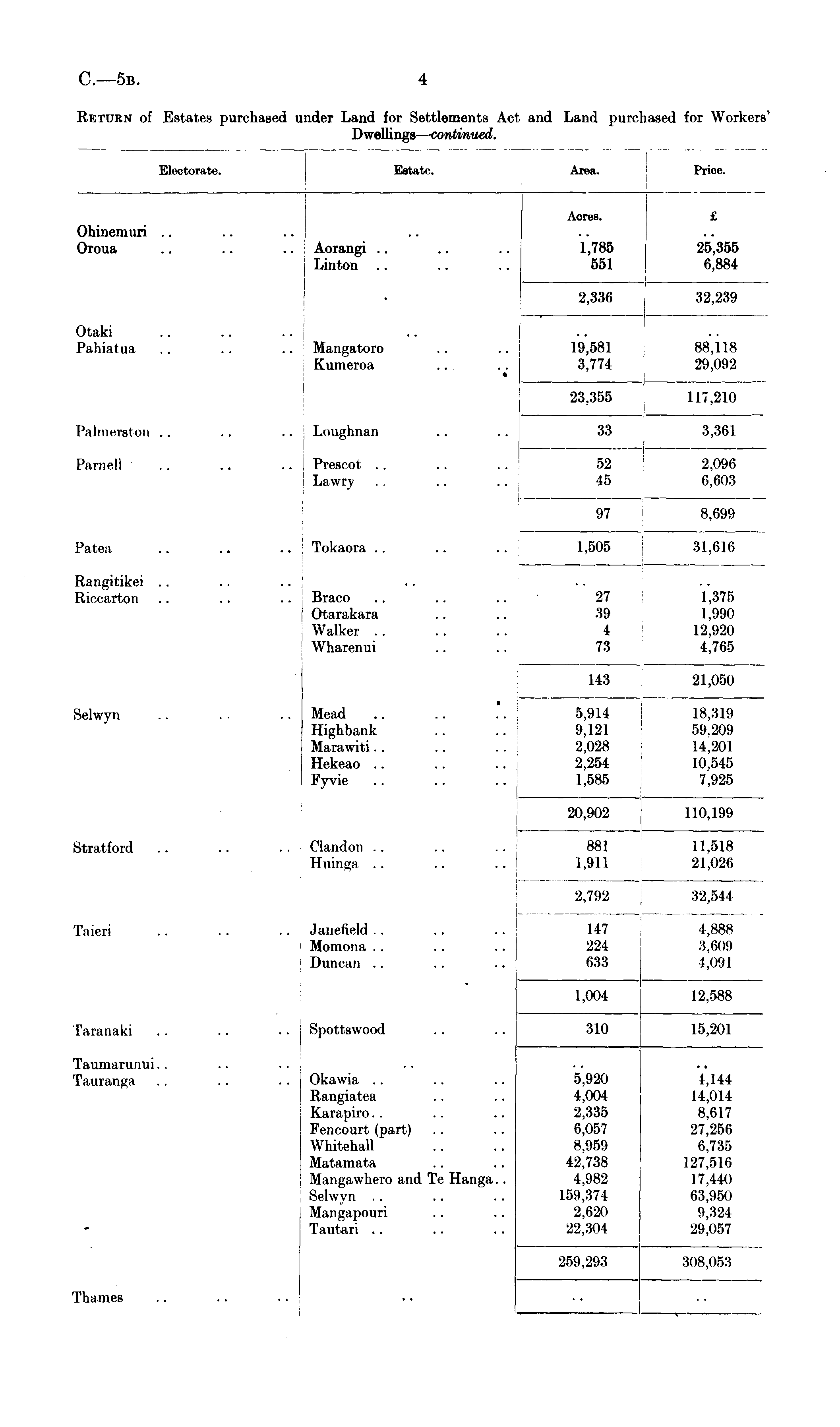 lectorate. ■a. ice. Ohinemuri .. Oroua Aorangi Linton Aores. 1,785 551 2,336 Aores. 1,785 551 £ 25,35E 6,884 32,239 £ 25,355 6,884 2,336 32,239 Otaki Pahiatua Mangatoro Kumeroa 19,581 3,774 19,581 3,774 -I— 88,118 29,092 88,118 29,092 23,355 l it oin 117,210 Palmerston . . Loughnan 33 33 3,361 3,361 Parnell Prescot Lawry 52 45 52 45 2,096 6,603 2,096 6,603 97 97 8,699 8,699 Patea Tokaora .. 1,505 31,616 1,505 31,616 - Rangitikei .. Riccarton Braco (Itarakara .. Walker Wharenui 27 39 4 73 140 1,375 1,990 12,920 4,765 Ol AKA • 143 143 21,050 21,050 Selwyn Mead Highbank Marawiti.. .. Hekeao .. .. Fyvie 5,914 9,121 2,028 2,254 1,585 5,914 9,121 2,028 2,254 1,585 18,319 59.209 14,201 10,545 7,925 18,319 59.209 14,201 10,545 7,925 20,902 110,199 tU\J)tJ\J& Stratford Clandon Huinga 881 1,911 881 1,911 11,518 21,026 11,518 21,026 2,792 32,544 2,792 32,544 T.nieri .lanefield . . < Momona Duncan 147 224 633 147 224 633 4,888 3,609 4,091 4,888 3,609 4,091 12,588 1,004 12,588 I ,VfV-T i - , KfW Taranaki Spottswood 310 310 15,201 15,201 Tauniarunui. . Tauranga Okawia Rangiatea Karapiro Fencourt (part) Whitehall Matamata Mangawhero and Te Hanga.. Selwyn Mangapouri Tautari 5,920 4,004 2,335 6,057 8,959 42,738 4,982 159,374 2,620 22,304 259,293 5,920 4,004 2,335 6,057 8,959 42,738 4,982 159,374 2,620 22,304 1,144 14,014 8,617 27,256 6,735 127,516 17,440 63,950 9,324 29,057 308,053 1,144 14,014 8,617 27,256 6,735 127,516 17,440 63,950 9,324 29,057 259,293 308,053 • Thames 'hames • — '•- — "* WVJ,VJV.J