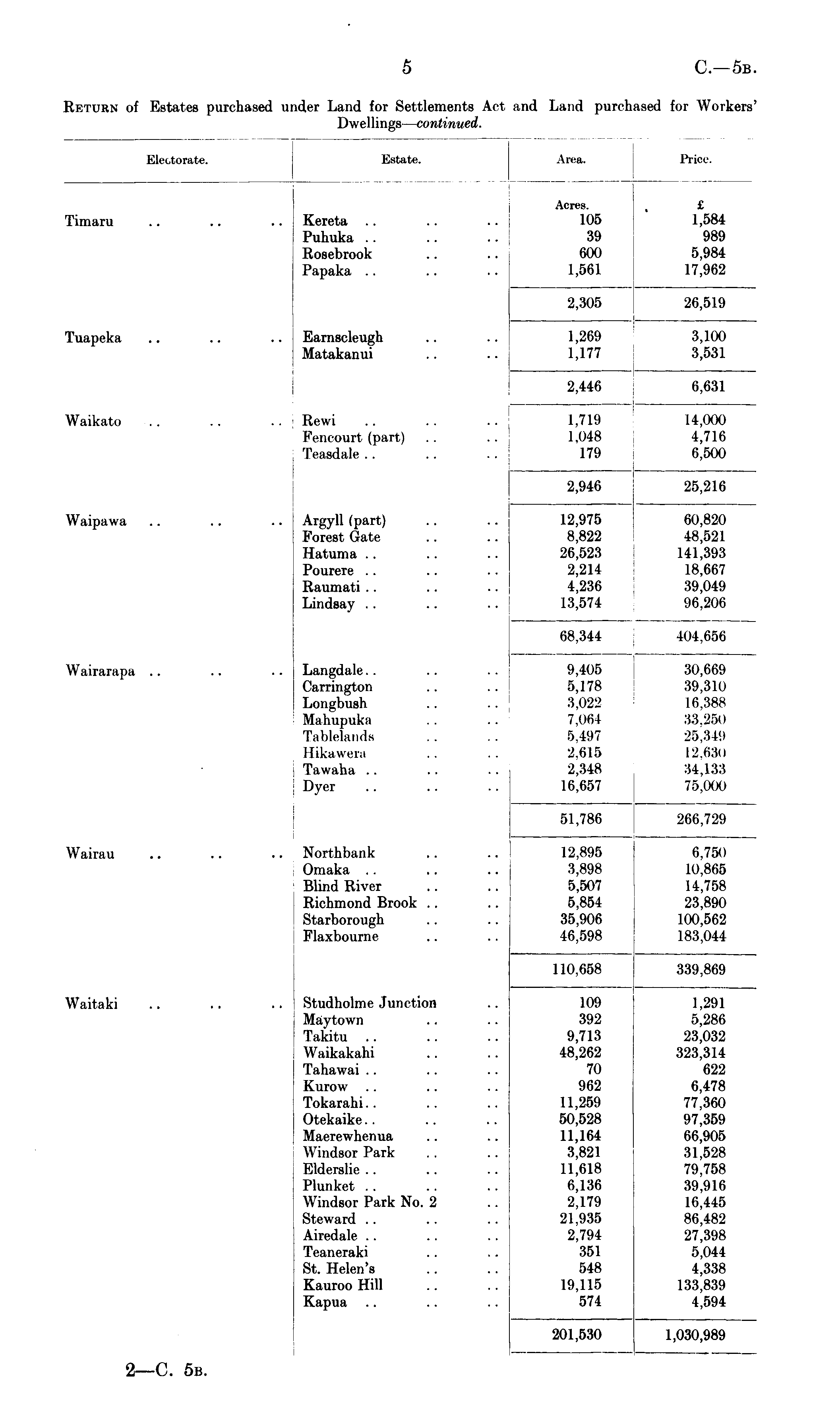 lectorai :<-. rca. ■ice. 'imam Kereta Puhuka Rosebrook Papaka 105 39 600 1,561 2.305 Acres. 105 39 600 1,561 1,584 989 5,984 17,962 26.519 £ 1,584 989 5,984 17,962 'uapeka Earnscleugh Matakanui 4,OXJO 1,269 1,177 9 44.fi 2,305 3,100 3,531 fi fWl 26,519 1,269 1,177 3,100 3,531 Vaikato Rewi Fencourt (part) Teasdale 2,440 1,719 1,048 179 9Q4.fi 2,446 0,031 14,000 4,716 6,500 9K 91 fi 6,631 1,719 1,048 179 14,000 4,716 6,500 Vaipawa Argyll (part) Forest Gate Hatuma Pourere Raumati Lindsay 2,940 12,975 8,822 26,523 2,214 4,236 13,574 68 344 12,975 8,822 26,523 2,214 4,236 13,574 2,946 20,210 60,820 48,521 141,393 18,667 39,049 96,206 404 656 60,820 48,521 141,393 18,667 39,049 96,206 25,216 Vairarapa Langdale Carrington Longbush Mahupuka Tablelands Hikawera Tawaha Dyer 00,044 9,405 5,178 3,022 7,064 5,497 2,616 2,348 16,657 51.786 68,344 -HJ4,OOD 30,669 39,310 16,388 33.250 25,349 12,630 34,133 75,000 266.799 404,656 Vairau Northbank Omaka Blind River Richmond Brook .. Starborough Flaxbourne ui,ioo 12,895 3,898 5,507 5,854 35,906 46,598 llflfiKR 51,786 12,895 3,898 5,507 5,854 35,906 46,598 ZOO,IZ» 6,750 10,865 14,758 23,890 100,562 183,044 33Q SfiQ 266,729 6,750 10,865 14,758 23,890 100,562 183,044 Vaitaki 110,658 339,869 Studholme Junction Maytown Takitu Waikakahi Tahawai Kurow Tokarahi Otekaike Maerewhenua Windsor Park Elderslie Plunket .. Windsor Park No. 2 Steward Airedale Teaneraki St. Helen's Kauroo Hill Kapua 110,008 109 392 9,713 48,262 70 962 11,259 50,528 11,164 3,821 11,618 6,136 2,179 21,935 2,794 351 548 19,115 574 109 392 9,713 48,262 70 962 11,259 50,528 11,164 3,821 11,618 6,136 2,179 21,935 2,794 351 548 19,115 574 339,869 1,291 5,286 23,032 323,314 622 6,478 77,360 97,359 66,905 31,528 79,758 39,916 16,445 86,482 27,398 5,044 4,338 133,839 4,594 1,291 5,286 23,032 323,314 622 6,478 77,360 97,359 66,905 31,528 79,758 39,916 16,445 86,482 27,398 5,044 4,338 133,839 4,594 201,530 1,030,989