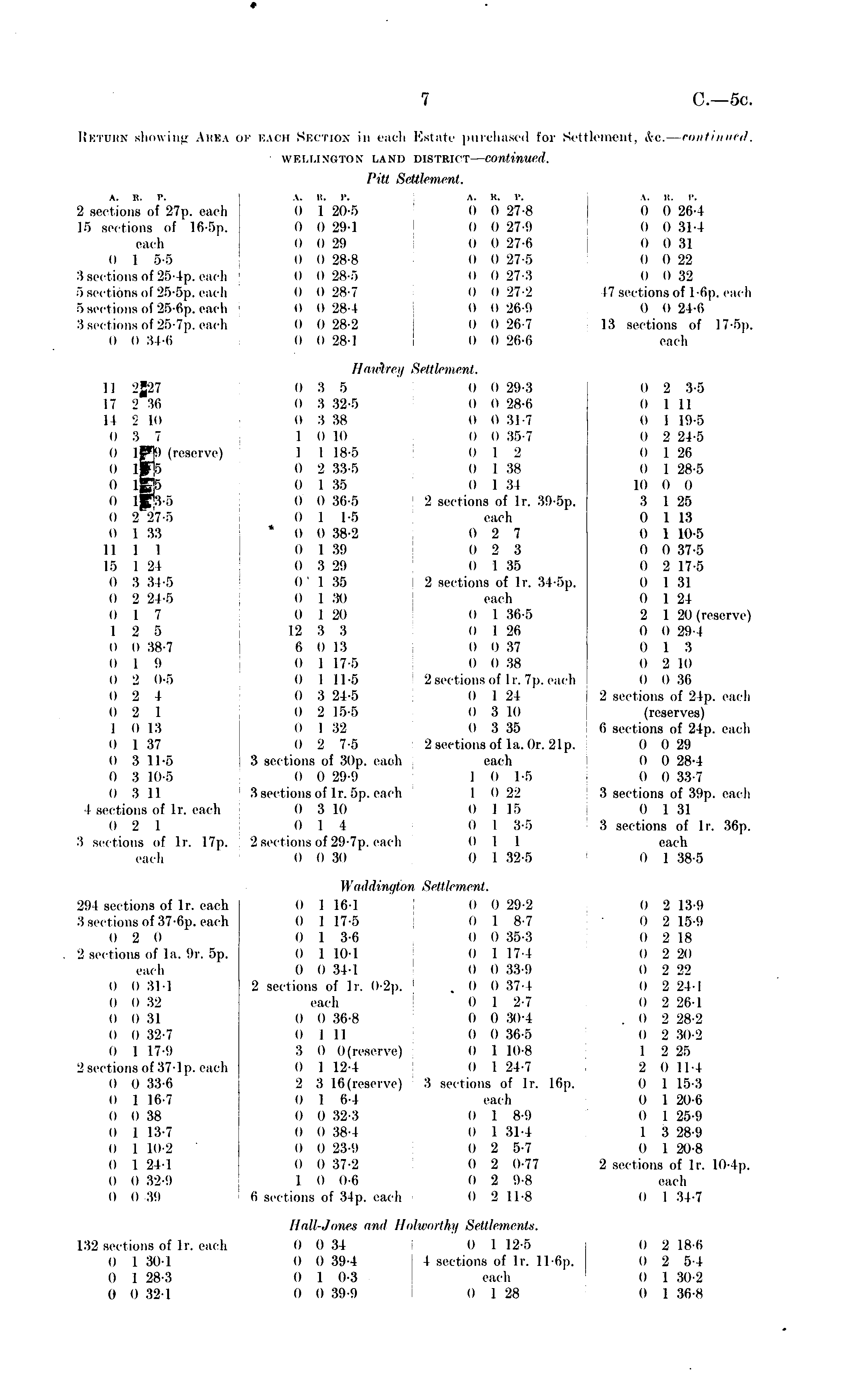 Return showing Aula of each Section in each Estate purchased for Settlement, &c- continued. Wellington land district continued. Pitt Settlement. A. 11. r. A. k. P. \. K. P. A. K. p. 2 sections of 27p. each 0 1 20-5 0 0 27-8 0 0 26-4 15 sections of 16-sp. 0 0 29-1 0 0 27-9 o 0 31-4 each 0 0 29 O 0 27-6 0 0 31 0 1 5-5 0 0 28-8 0 o 27-5 0 022 3 sections of 25-lp. each 0 0 28-5 O 0 27-3 0 0 32 5 sections of 25-sp. each 0 0 28-7 o 0 27-2 47 sections of l-6p. each 5 sections of 25-6 p. each 0 0 28-4 0 0 26-9 0 0 24-6 3 sections of 25-7 p. each 0 0 28-2 0 0 26-7 13 sections of L7-sp. 0 0 31-6 0 0 28-1 0 0 26-6 each llnietreij Settlement. II 2J27 0 3 5 0 il 29-3 0 2 3-5 17 2 36 o 3 32-5 0 o 28-6 0 111 14 2 10 o 3 38 0 o 31-7 o I 19-5 0 3 7 1 0 10 0 o 35-7 0 2 24-5 0 ISJT9 (reserve) 1 1 18-5 0 12 0 1 26 0 ]|&1r) 0 2 33-5 0 I 38 0 1 28-5 0 lgt, 0 1 35 0 1 31 10 0 o 0 UJJ3-5 0 0 36-5 2 sections of lr. 39-sp. 3 125 0 2 27-5 0 1 1-5 each 0 1 13 o 1 33, 0 0 38-2 0 2 7 0 1 10-5 1111 0 1 39 0 2 3 0 0 37-5 15 I 21 0 3 29 0 I 35 0 2 17-5 0 3 31-5 o 135 2 sections of lr. 34-sp. o 131 o 2 21-5 0 1 30 each 0 121 0 17 0 I 20 0 1 36-5 2 1 20 (reserve) 12 5 12 3 3 0 1 26 0 0 29-4 0 0 38-7 6 0 13 0 o 37 0 1 3 0 19 0 1 17-5 0 038 o 2 10 o 2 0-5 o I 11-5 2 sections of lr. 7p. each 0 0 36 0 2 4 0 3 21-5 0 121 2 sections of 21 p. each 0 2 1 0 2 15-5 0 3 10 (reserves) 1 0 13 o 132 o 3 35 6 sections of 24p. each o 137 0 2 7-5 2 sections of la. Or. 21p. 0 029 (I 3 11-5 3 sections of 30p. each each 0 0 28-4 0 3 10-5 0 0 29-9 I 0 1-5 0 0 33-7 0 3 11 3 sections of lr. sp. each I 022 3 sections of 39p. each I sections of lr. each 0 3 10 0 I 15 0 1 31 0 2 1 0 14 0 1 3-5 3 sections of lr. 36p. •", sections of lr. 17]). 2 sections of 29-7 p. each 0 1 1 each each 0 0 30 0 1 32-5 0 1 38-5 Waddingion Settlement. 291 sections of lr. each 0 1 161 0 0 29-2 0 2 13-9 3 sections of 37-6 p. each 0 1 17-5 0 1 8-7 0 2 15-9 0 2 0 ol 3-6 o 0 35-3 0 2 18 2 sections of la. 9r. sp. 0 1 101 0 1 171 0 220 each 0 0 31-1 0 0 33-9 0 2 22 o 0 31-1 2 sections of lr. 0-2 p. . 0 0 37-4 0 2 24-1 0 0 32 each II I 2-7 0 2 26-1 0 0 31 0 0 36-8 0 0 30-4 . 0 2 28-2 0 0 32-7 0 111 0 0 36-5 0 2 30-2 0 1 17-9 3 0 O(reserve) 0 1 10-8 1 2 25 2 sect ions of 37-1 ii. each 0 1 12-1 0 1 24-7 2 0 11-4 0 0 33-6 2 3 16(reserve) 3 sections of Ir. 16p. 0 1 15-3 0 1 16-7 0 1 6-4 each 0 1 20-6 0 0 38 0 0 32-3 0 1 8-9 () 1 25-9 o 1 13-7 o o 38-4 0 1 31-4 1 3 28-9 0 1 10-2 0 0 23-9 o 2 5-7 0 1 20-8 0 I 21-1 0 0 37-2 0 2 0-77 2 sections of lr. 10- lp. 0 0 32-9 1 0 0-6 0 2 9-8 each 0 0 39 6 sections of 34p. each 0 2 11-8 o I 31-7 llnll-.liniex mill Holworthy Settlements. 132 sections of lr. each 0 034 0 112-5 o 2 18-6 0 130-1 o 0 39-4 1 sections of lr. 11-6 p. 0 2 5-1 0 1 28-3 0 1 0-3 each 0 1 30-2 0 0 32-1 o 0 39-9 0 1 28 0 1 36-8