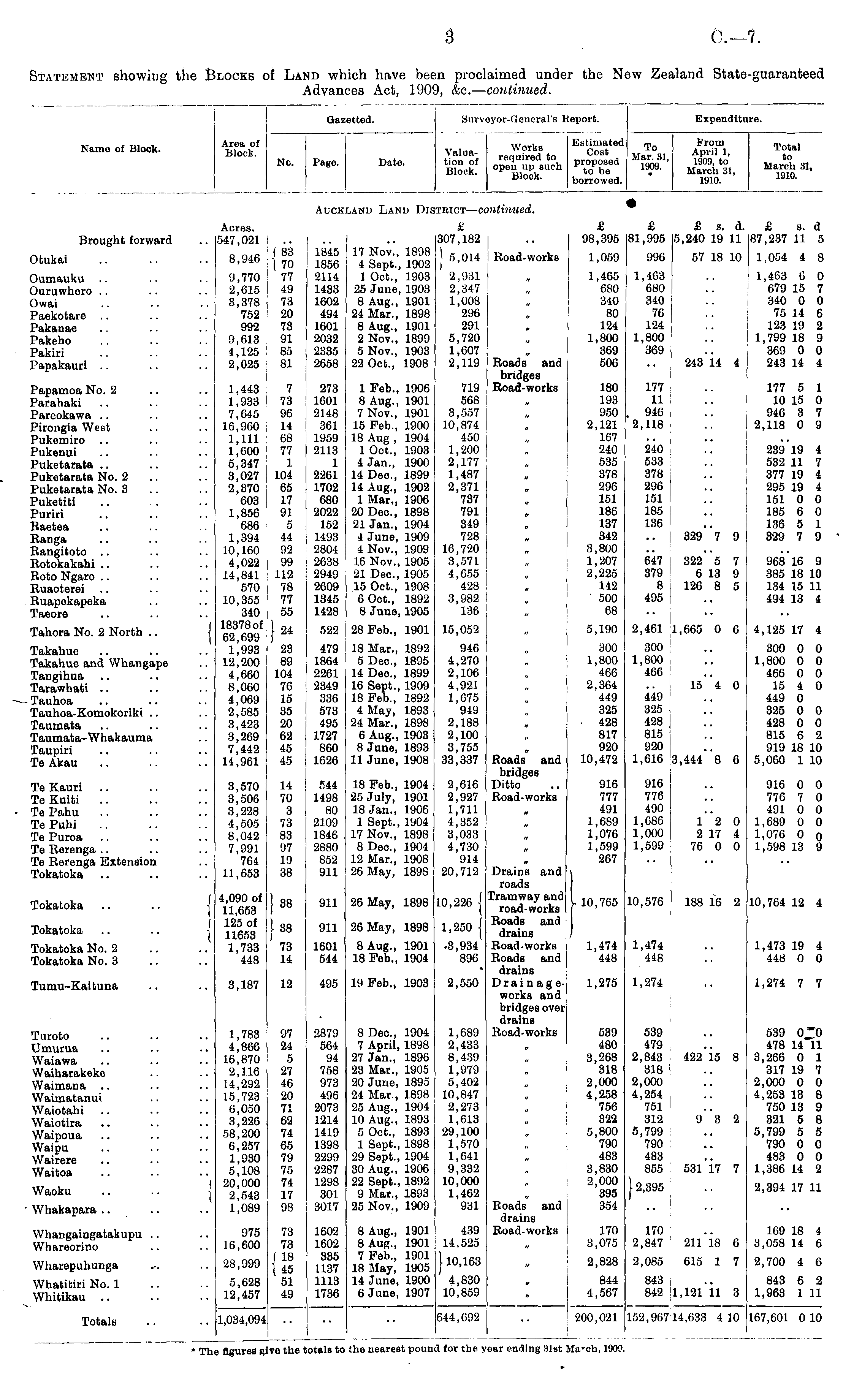 Statement showing the Blocks of Land which have been proclaimed under the New Zealand State-guaranteed Advances Act, 1909, &c.— continued.