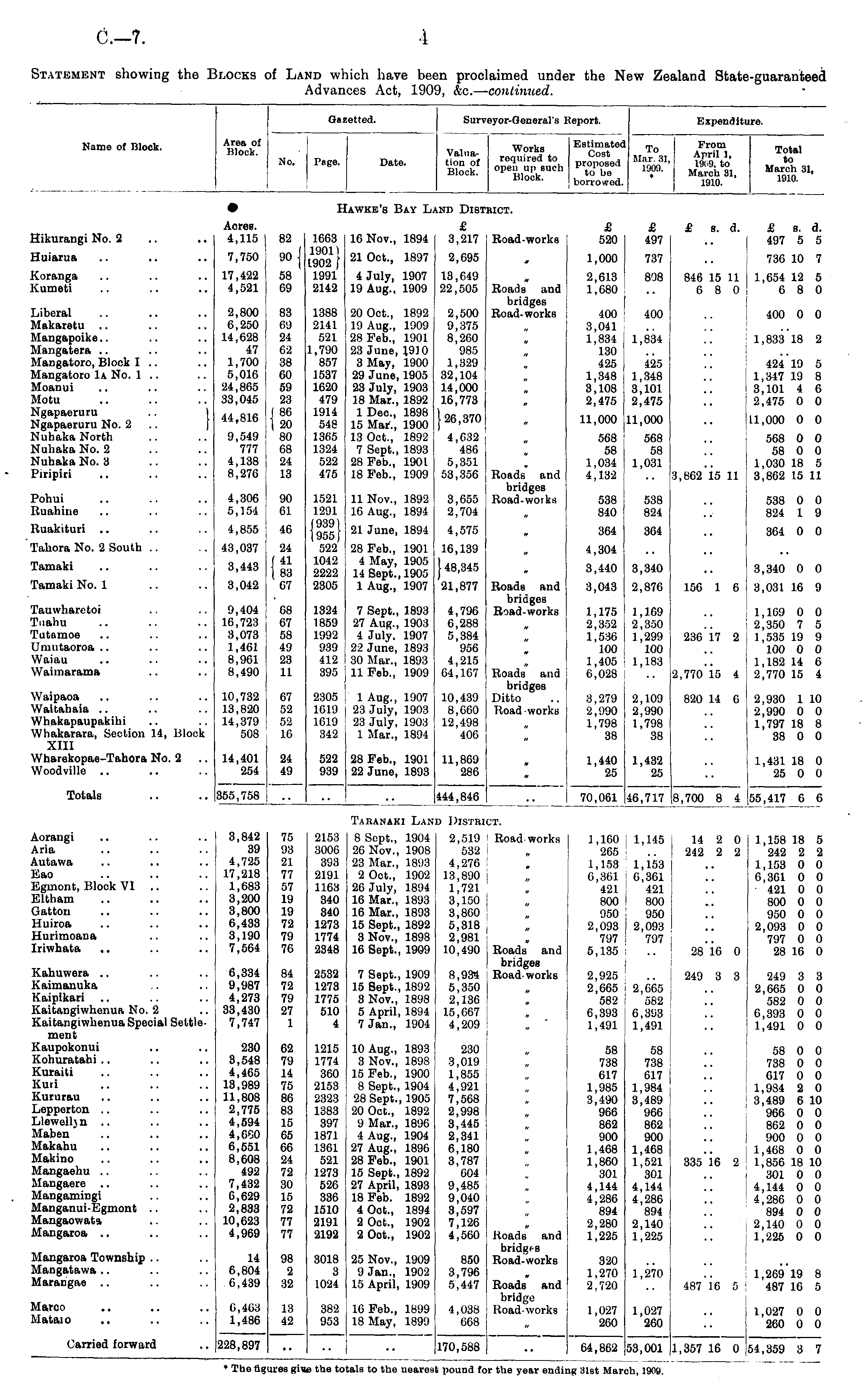 Statement showing the Blocks of Land which have been proclaimed under the New Zealand State-guaranteed Advances Act, 1909, &c. — continued.