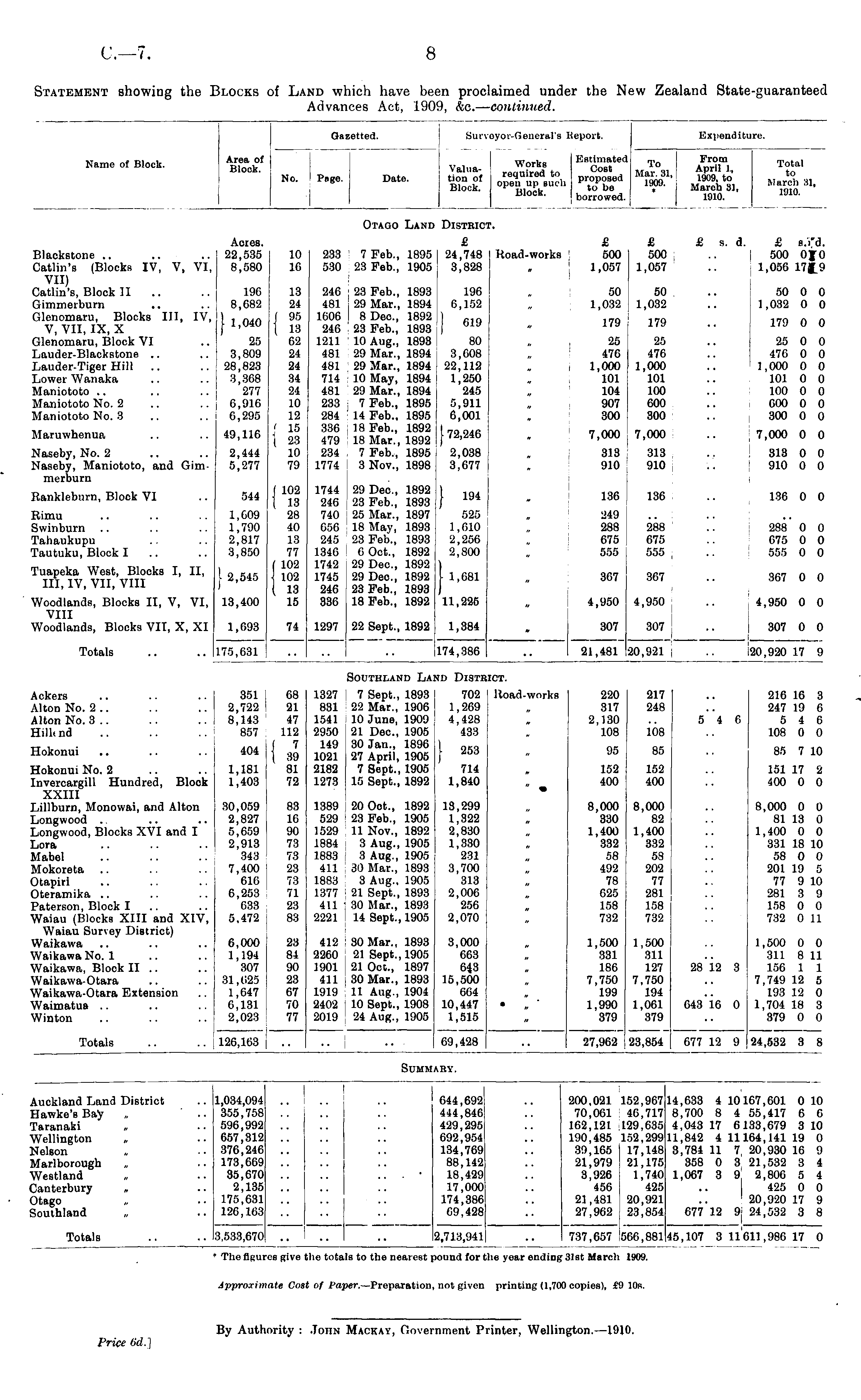 Statement showing the Blocks of Land which have been proclaimed under the New Zealand State-guaranteed Advances Act, 1909, &c.—continued.