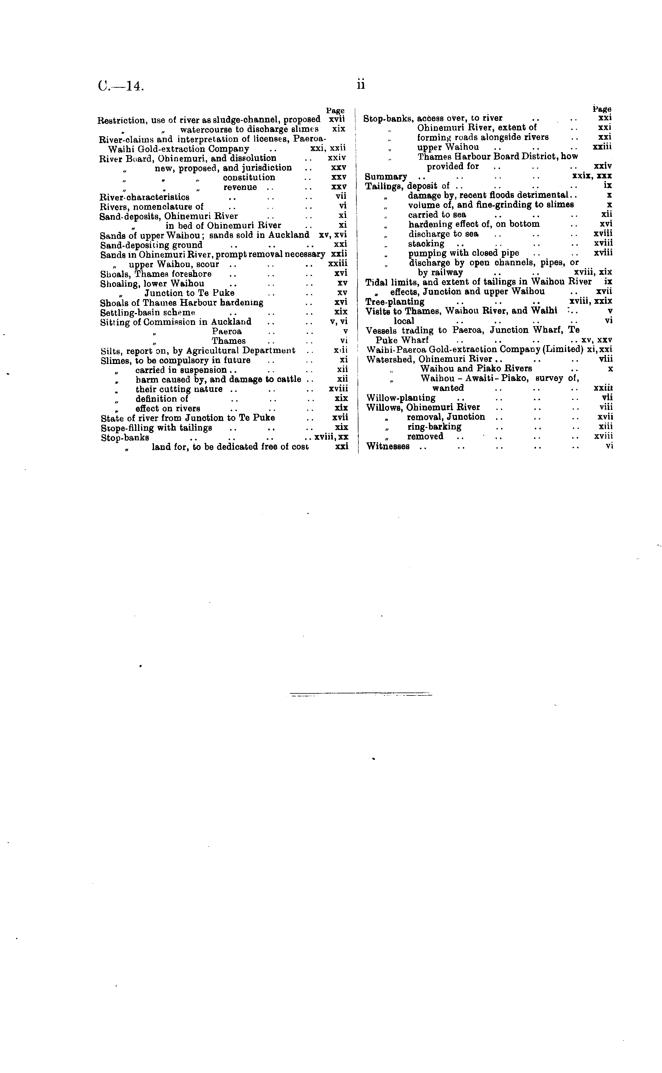 Page Stop-banks, access over, to river .. .. xxi Ohinemuri River, extent of .. xxi forming roads alongside rivers .. xxi upper Waihou .. .. .. xxiii Thames Harbour Board District, how provided for .. xxiv Summary .. .. .. xxix, xxx Tailings, deposit of .. .. .. ix damage by, recent floods detrimental.. x volume of, and fine-grinding to slimes x carried to sea .. .. .. xii hardening effect of, on bottom .. xvi discharge to sea .. .. .. xviii staoking .. .. .. xviii pumping with closed pipe .. xviii discharge by open ohannels, pipes, or by railway .. .. xviii, xix Tidal limits, and extent of tailings in Waihou River ix effects, Junction and upper Waihou .. xvii Tree-planting .. .. .. xviii, xxix Visits to Thames, Waihou River, and Waihi v local .. .. .. .• vi Vessels trading to Paeroa, Junction Wharf, Te Puke Wharf .. .. .. .. xv, xxv Waihi-Paeroa Gold-extraction Company (Limited) xi.xxi Watershed, Ohinemuri River .. .. .. viii Waihou and Piako Rivers .. x Waihou - Awaiti- Piako, survey of, wanted .. .. .. xxiii Willow-planting .. .. .. .. vii Willows, Ohinemuri River .. .. viii removal, Junotion .. .. .. xvii ring-barking .. .. .. xiii removed .. .. .. .. xviii Witnesses .. .. .. .. .. vi