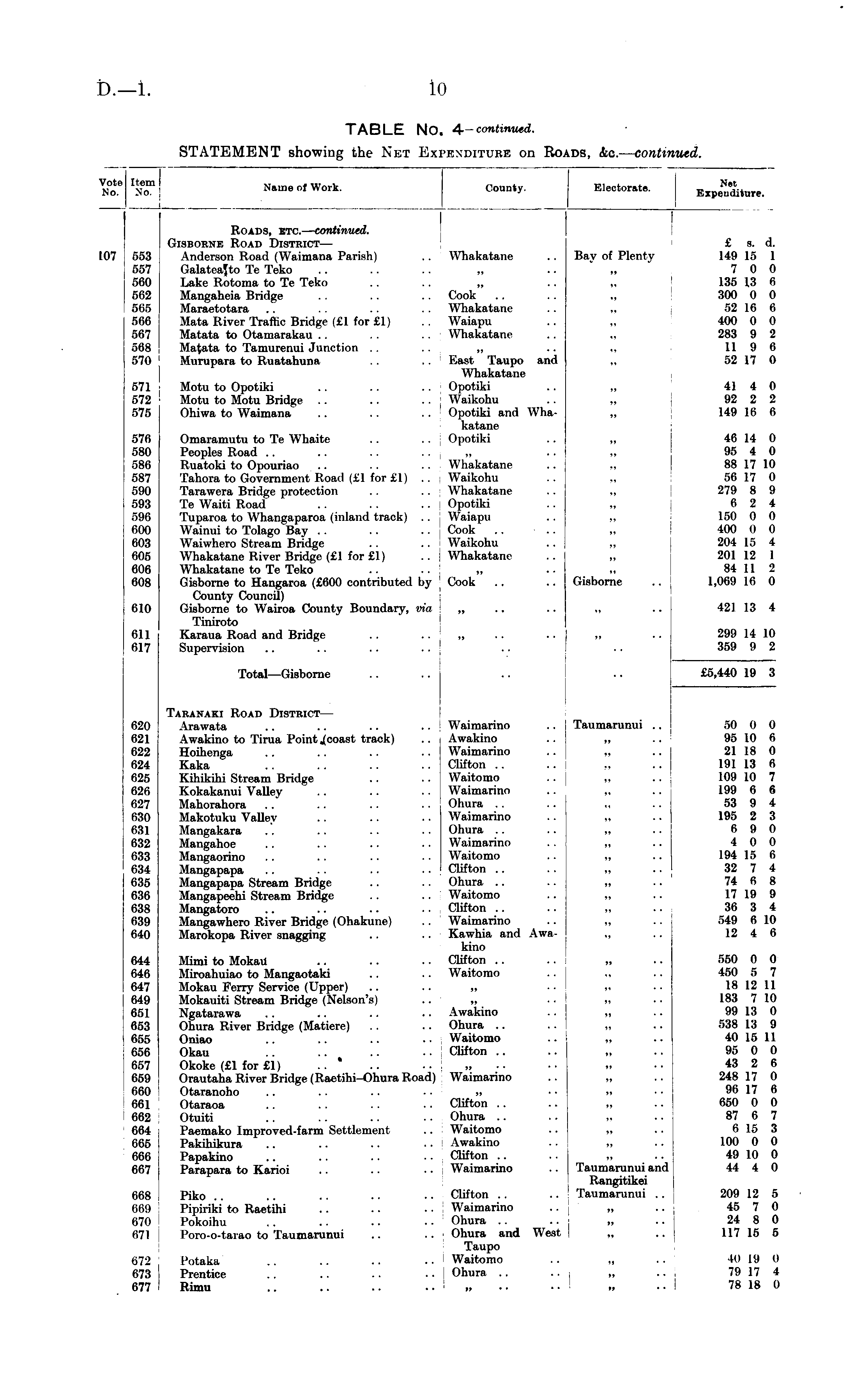 TABLE No. 4—continued. STATEMENT showing the Net Expenditure on Roads, &c. — continued.