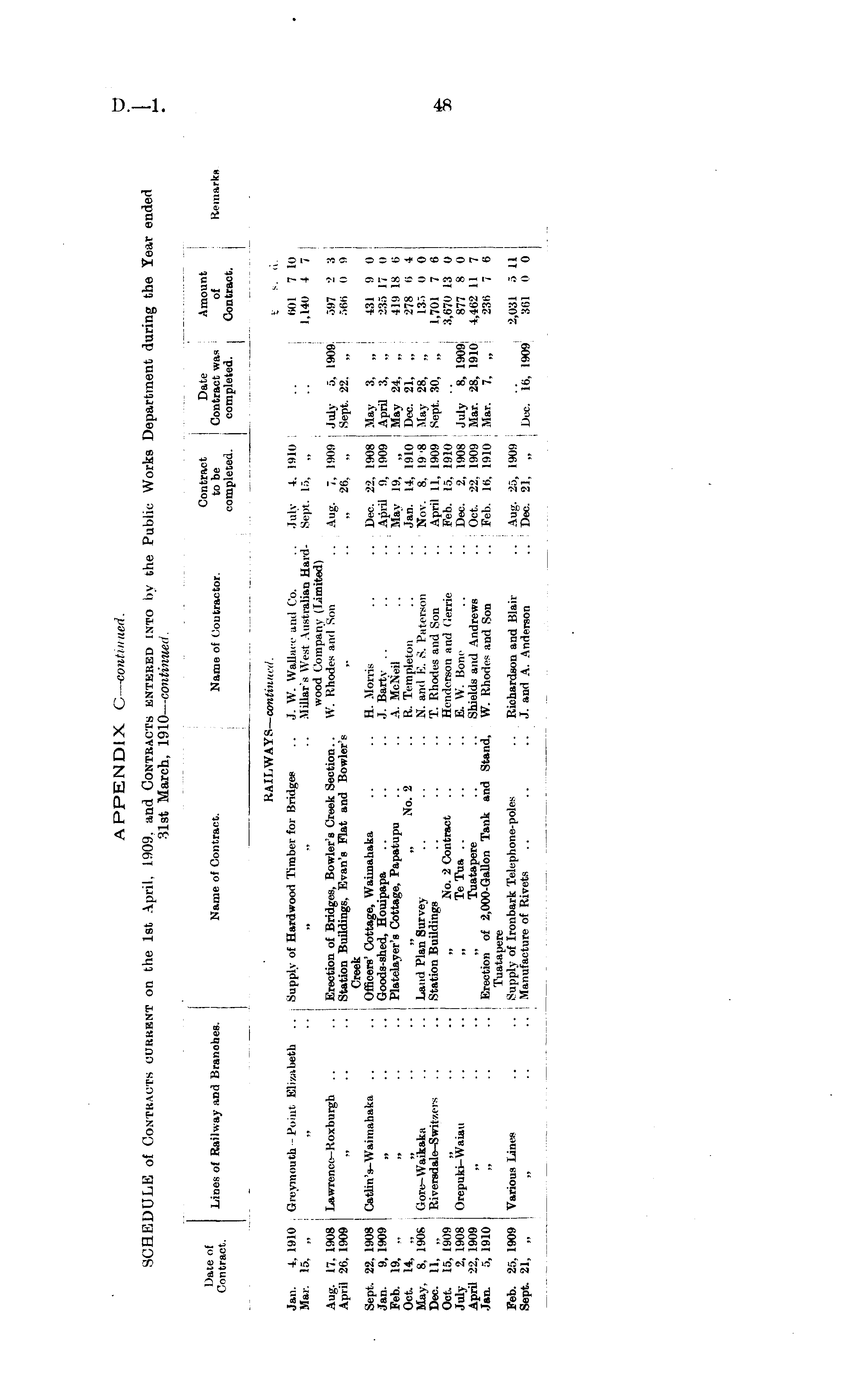 APPEN D IX C— continued. SCHEDULE of Contracts current on the 1st April, 1909, and Contracts entered into by the Public Works Department during the Year ended 31st March, 1910— continued.