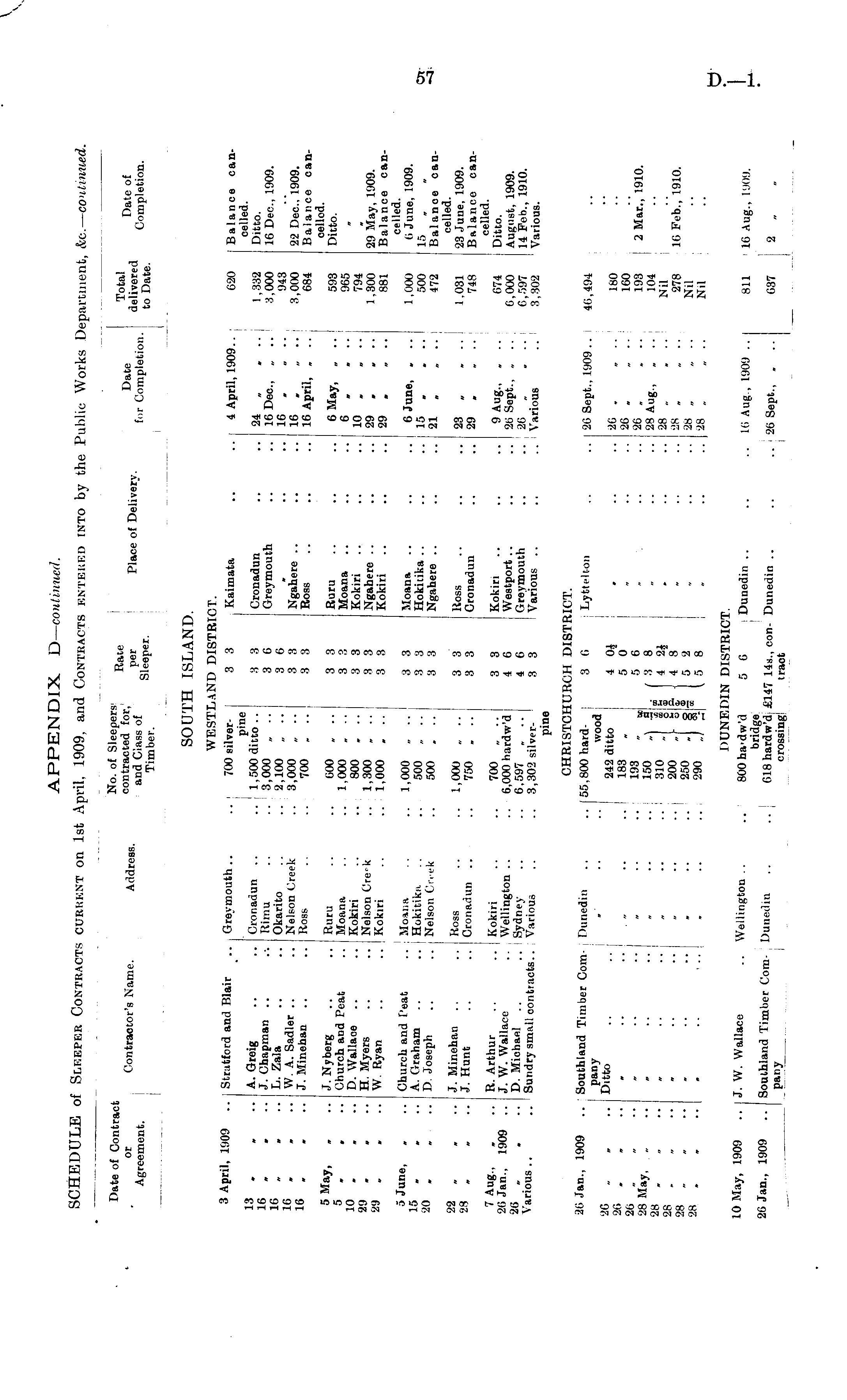 APPENDIX D— continued. SCHEDULE of Sleeper Contracts current on 1st April, 1909, and Contracts entered into by the Public Works Department, &c.— continued.