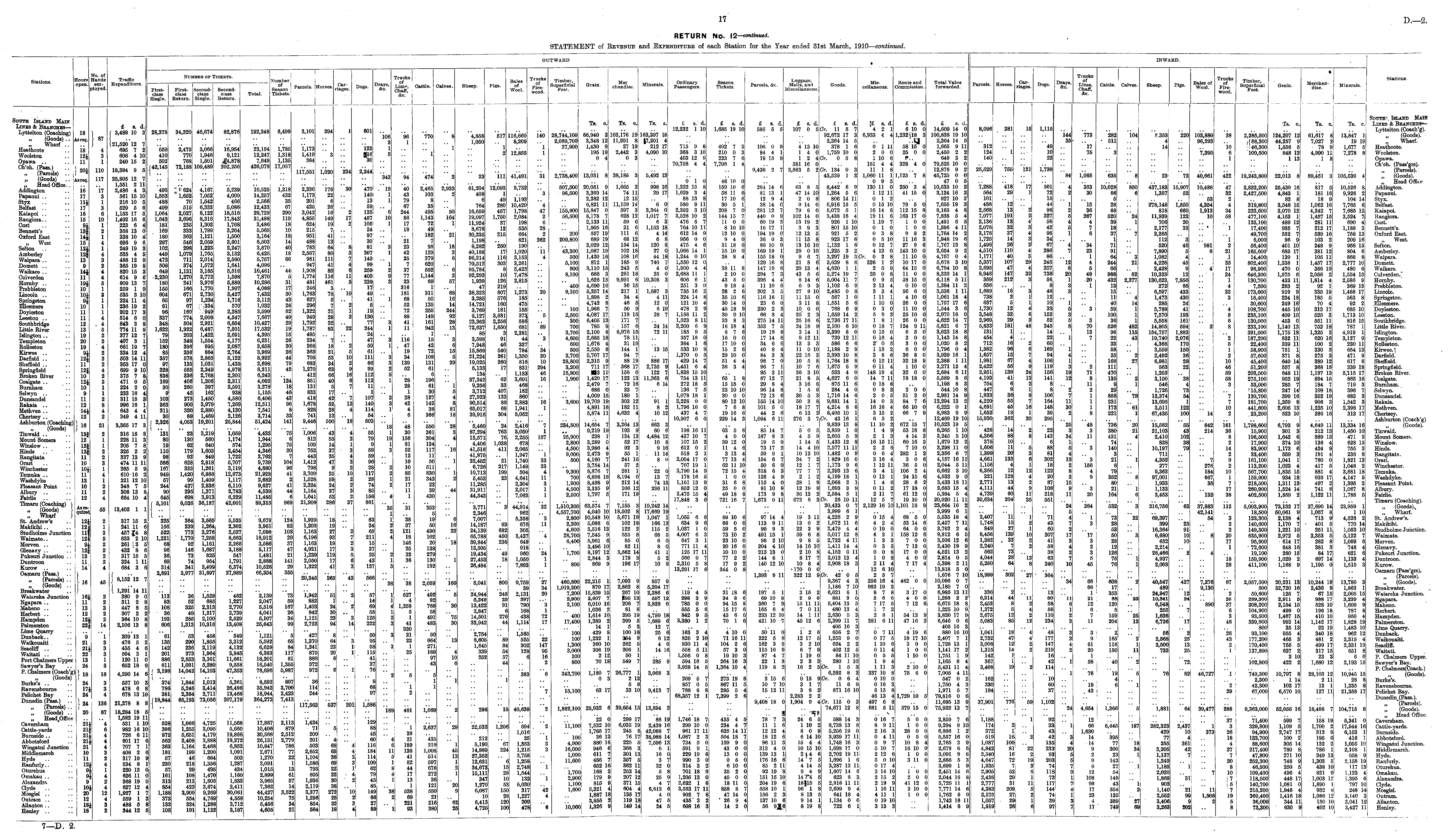 RETURN No. 12-continued. STATEMENT of Revenue and Expenditure of each Station for the Year ended 31st March, 1910— continued.