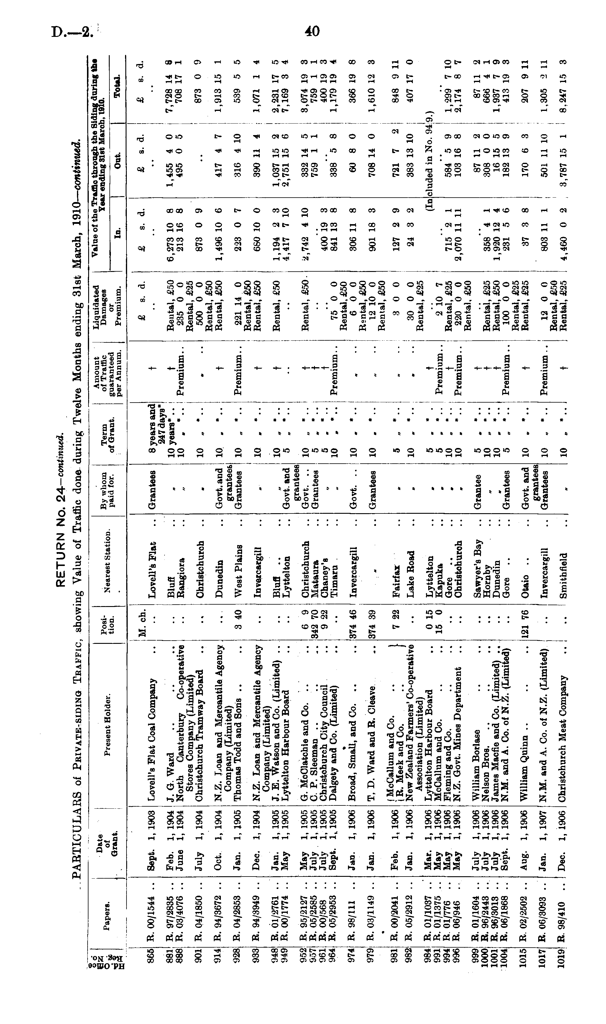RETURN No. 24—continued. PARTICULARS of Private-siding Traffic, showing Value of Traffic done during Twelve Months ending 31st March, 1910— continued.
