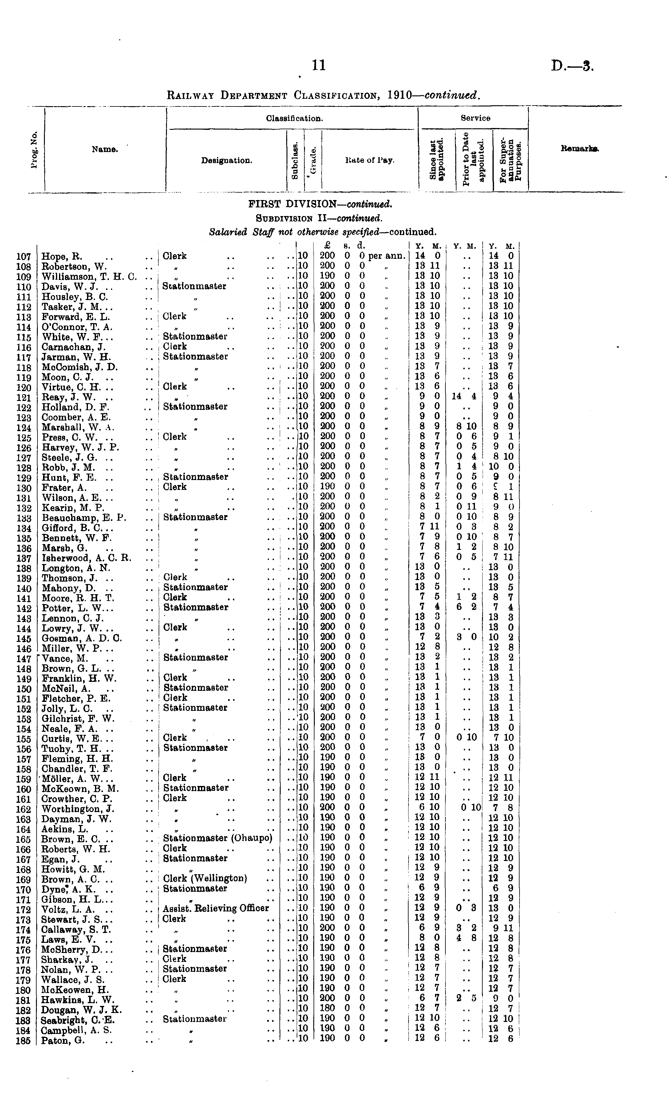 Classili .tion. Service o 2 9 Name. Designation. -a ji Elate of 1'ay. ■~ H *i'0 03 rH 3S (3 2 ~z a o oi 3 aft g a. Hfl ■ OJ o CO Q..S OJ 3 ee O CO s Oh Keuiurka. FIRST Dl 3ION— continued. SUBDIVIS II— continued. '.rwise specified —coul £ 8. A. 200 0 0 per arm. 200 0 0 190 0 0 200 0 0 200 0 0 200 0 0 200 0 0 200 0 0 200 0 0 200 0 0 200 0 0 200 0 0 200 0 0 200 0 0 200 0 0 200 0 0 200 0 0 200 0 0 200 0 0 200 0 0 200 0 0 200 0 0 200 0 0 190 0 0 , 200 0 0 ! 200 0 0 200 0 0 200 0 0 200 0 0 200 0 0 200 0 0 200 0 0 200 0 0 200 0 0 200 0 0 200 0 0 200 0 0 200 0 0 200 0 0 200 0 0 200 0 0 200 0 0 200 0 0 200 0 0 200 0 0 200 0 0 200 0 0 200 0 0 200 0 0 200 0 0 190 0 0 190 0 0 190 0 0 190 0 0 190 0 0 200 0 0 190 0 0 190 0 0 190 0 0 190 0 0 190 0 0 190 0 0 190 0 0 190 0 0 190 0 0 190 0 0 190 0 0 200 0 0 190 0 0 190 0 0 190 0 0 190 0 0 190 0 0 190 0 0 200 0 0 180 0 0 190 0 0 190 0 0 190 0 0 tinued. Salaried Staff not othi 107 108 109 110 111 112 113 114 115 116 117 118 119 120 121 122 123 124 125 126 127 128 129 130 131 132 133 134 135 136 137 138 139 140 141 142 143 144 145 146 147 148 149 150 151 152 153 154 155 156 157 158 159 160 161 162 163 164 165 166 167 168 169 170 171 172 173 174 175 176 177 178 179 180 181 182 183 184 185 Hope, R. .. .. Clerk .. .... Robertson, W. » . • .... Williamson, T. H. C. .. „ .. .... Davis, W. 3. .. Stationmaster Housley, B. C. .. „ .... Tasker, J. M. .. „ .... Forward, E. L. Clerk O'Connor, T. A. .. „ .. ... White, W. F. .. Stationmaster Carnachan, J. .. Cierk Jarman, \V. H. Stationmaster McComish, J. D. .. „ .... Moon, C. J. .. .. „ .... Virtue, C. H. .. .. Clerk .. .... Reay, J. W. .. .. . .... Holland, D. F. Stationmaster Coomber, A. E. .. . .... Marshall, W. A. . .. .. Press, C. W. .. .. Clerk .. .. Harvey, W. J. P. .. . ■ • Steele, 3, G. .. .. „ . ■ .... Robb, J. M. .. .. . .. • • • • Hunt, F. E. .. Stationmaster Frater, A. .. .. Clerk .. .... Wilson, A. E. .. .. „ .. ... Kearin, M. P. „ .. .. .. Beauoharnp, E. P. .. Stationmaster Gifford, B. 0. .. .. . ■• •• Bennett, W. F. . .... Marsh, G. .. .. » .... Isherwood, A. C. R. .. .... Longton, A.N. .. » Thomson, J. .. .. Clerk .. .. Mahony, D. .. Stationmaster Moore, R. H. T. .. Clerk .. .... Potter, L. W... Stationmaster Lennon, C. J. » .... Lowry, J. W. .. .. Clerk .. Gosman, A. D. C. » .. .... Miller, W. P. .. .. . .. •• •• r Vance, M. .. Stationmaster .. .. Brown, G. L. .. . .... Franklin, H. W. .. Clerk .. .... McNeil, A. .. .. Stationmaster Fletcher, P. E. .. Clerk .. .. Jolly, L. C. .. .. Stationmaster Gilchrist, F. W. . •. • • Neale, F. A. .. .. . .... Curtis, W. E. .. .. Clerk .. Tuohy, T. H. .. .. Stationmaster Fleming, H. H. „ .... Chandler, T. F. „ .... Moller, A. W... .. Clerk .. .. .. McKeown, B. M. Stationmaster .. .. Crowther, C. P. .. Clerk .. .. Worthington, J. .. „ .. .... Dayman, 3. W. .. ,, ■■ •• Aekins, L. .. .. „ ■■ .... Brown, E. C. .. .. Stationmaster (Ohaupo) Roberts, W. H. .. Clerk .. .... Egan, J. .. .. Stationmaster Howitt, G. M. .. . .. . ■ Brown, A. C... .. Clerk (Wellington) .. .. Dyne* A. K. .. .. Stationmaster Gibson, H. L... . .. .. Voltz, h. A. .. .. Assist. Relieving Officer Stewart, J. S... .. Clerk .. .. Callaway, S. T. ■ • • • • ■ • • ■ Laws, E. V. .. .. . • • .... McSherry, D. .. Stationmaster .. Sharkay, J. .. .. Clerk .. .. Nolan, W. P. .. Stationmaster Wallace, J. S. .. Clerk .. .... McKeowen, H. .. .. •• Hawkins, L. W. .. „ • • .... Dougan, W. J. K • • .... Seabright, C. E. .. Stationmaster Campbell, A. S. .. • .. .. Paton, G. .. .. » .... 10 10 10 10 10 10 10 10 10 10 10 10 10 10 10 10 10 10 10 10 10 10 10 10 10 10 10 10 10 10 10 10 10 10 10 10 10 10 10 10 10 10 10 10 10 10 10 10 10 10 10 10 10 10 10 10 10 10 10 10 10 10 10 10 10 10 10 10 10 10 10 10 10 10 10 10 10 10 10 I Y. M. ! 14 0 i 13 11 ; 13 10 13 10 18 10 18 10 13 10 13 9 13 9 13 9 13 9 13 7 13 6 13 6 9 0 9 0 9 0 8 9 8 7 8 7 8 7 8 7 8 7 8 7 8 2 8 1 8 0 7 11 7 9 7 8 7 6 13 0 13 0 13 5 7 5 7 4 13 3 13 0 7 2 12 8 13 2 13 1 13 1 13 1 13 1 13 1 13 1 13 0 7 0 13 0 13 0 13 0 12 11 12 10 12 10 G 10 12 10 12 10 12 10 12 10 12 10 12 9 12 9 6 9 12 9 12 9 12 9 6 9 8 0 12 8 12 8 12 7 12 7 12 7 6 7 12 7 12 10 12 6 I 12 6 i I Y. M. V. M. 14 0 13 11 13 10 .. ! 13 10 13 10 13 10 .. I 13 10 13 9 13 9 13 9 13 9 13 7 13 6 13 6 14 4 9 4 9 0 <J 0 8 10 8 9 0 6 9 1 0 5 ! 9 0 0 4 8 10 1 4 10 0 0 5 9 0 0 6 e 1 0 9 8 11 0 11 li 'i 0 10 8 9 0 3 8 2 0 10 8 7 12 8 10 0 5 7 11 13 0 13 0 13 5 12 8 7 6 2 7 4 13 3 13 0 3 0 10 2 12 8 .. 1 13 2 13 1 13 1 13 1 13 1 13 1 13 1 13 0 0 10 7 10 13 0 13 0 13 0 12 11 .. 12 10 .. 12 10 0 10 7 8 12 10 12 10 12 10 12 10 12 10 12 9 12 9 6 9 12 9 0 3 13 0 12 9 3 2 9 11 4 8 12 8 12 8 12 8 12 7 12 7 12 7 2 5 9 0 .. . 12 7 .. i 12 10 12 6 .. 12 6