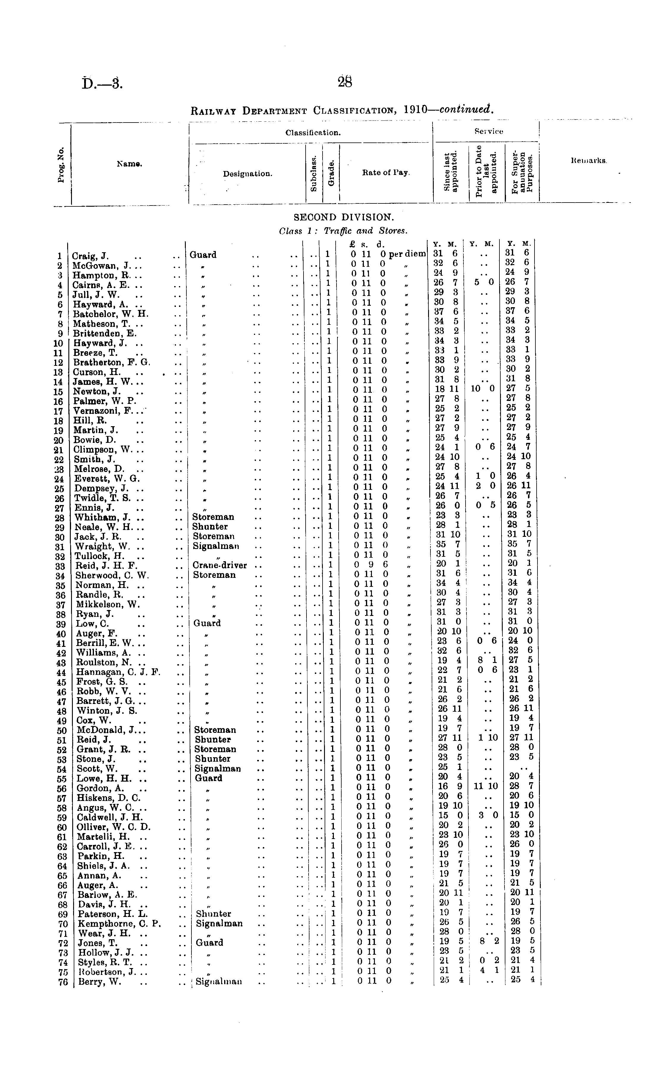 Railway Department Classification, 1910— continued.