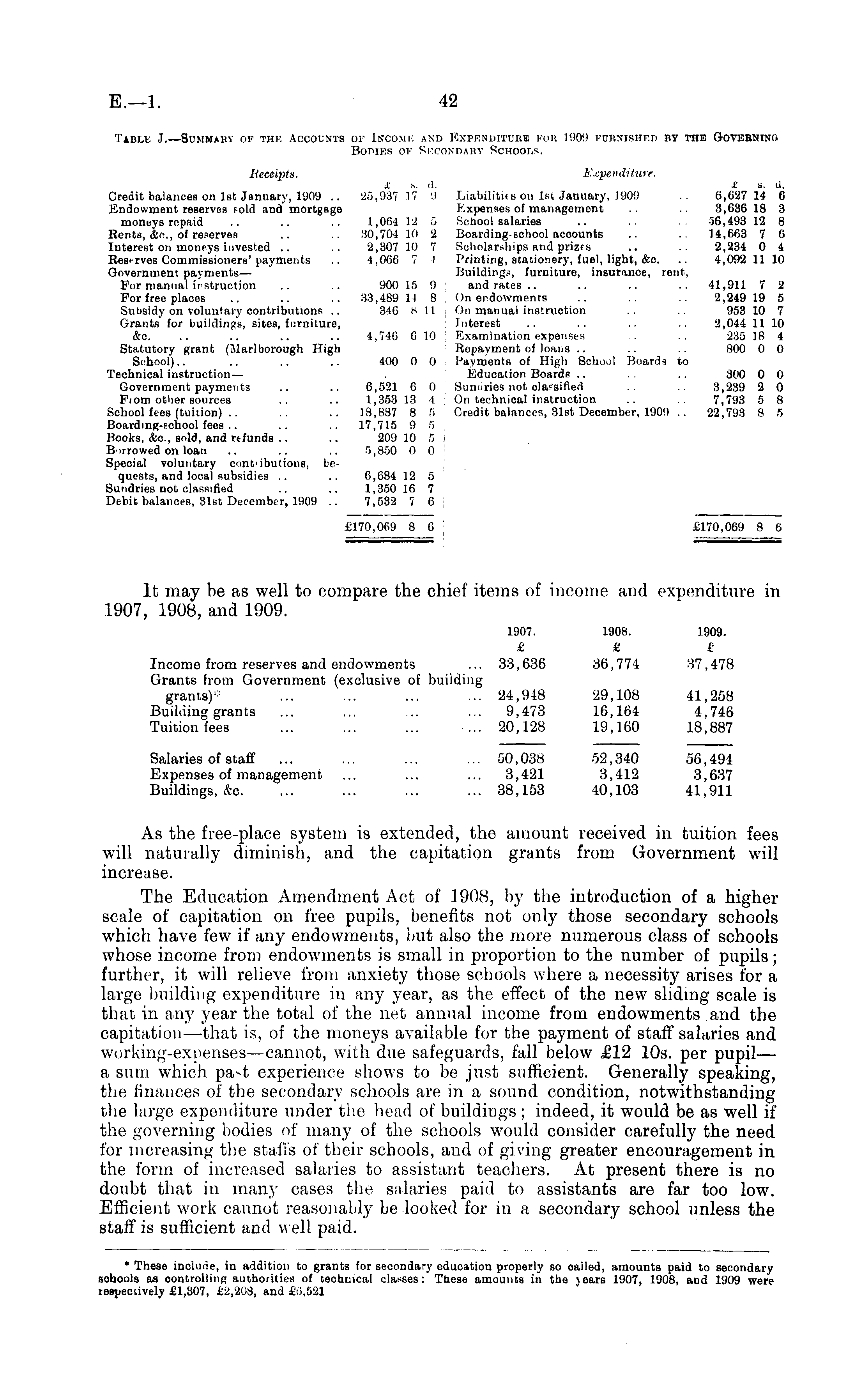 * These include, in addition to grants for secondary education properly so oalled, amounts paid to secondary sohools as controlling authorities of technical classes: These amounts in the \ears 1907, 1908, aud 1909 were respectively £1,307, £2,208, and £ii,521
