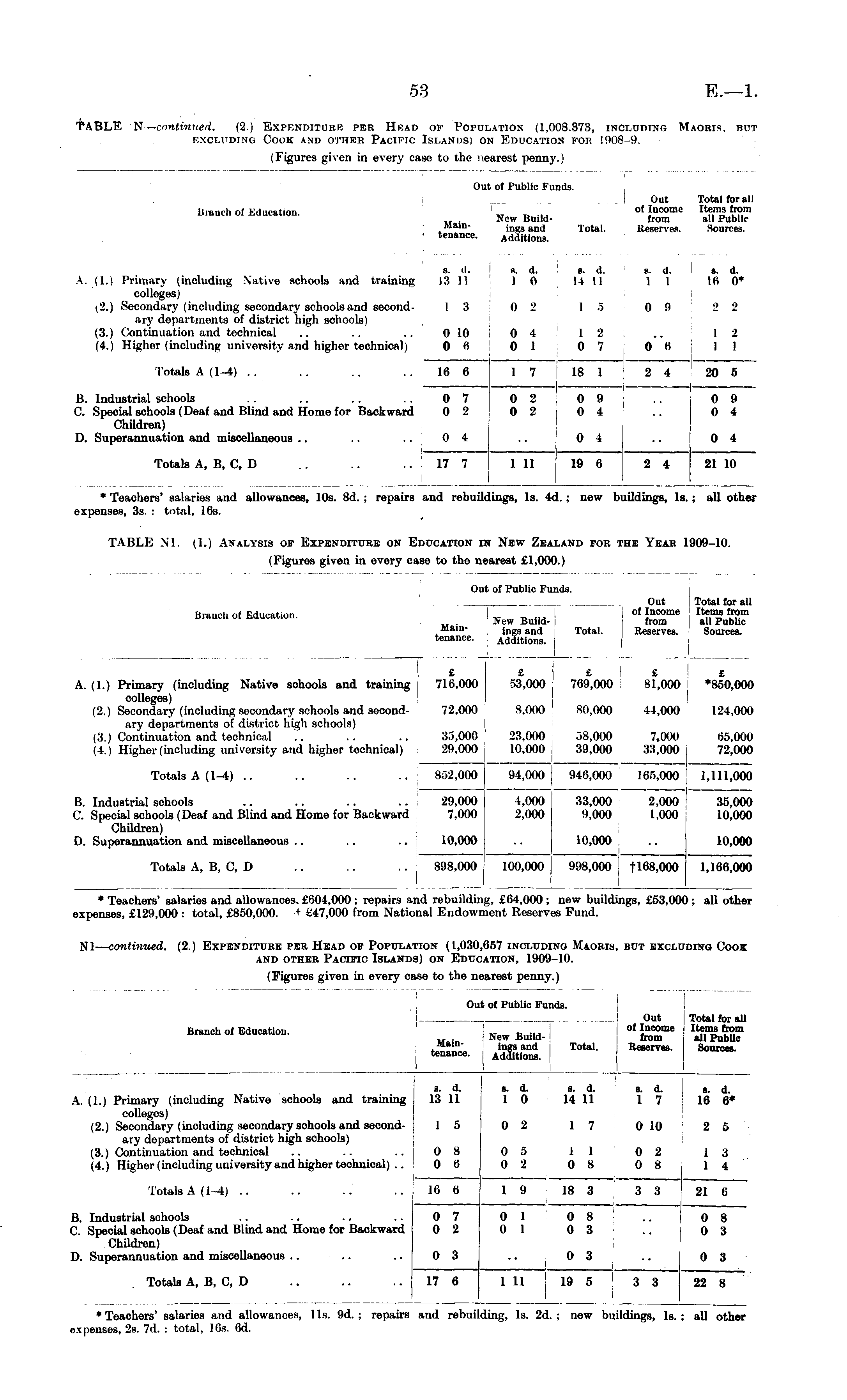 TABLE N1. (1.) Analysis of Expenditure on Education in New Zealand for the Year 1909-10.