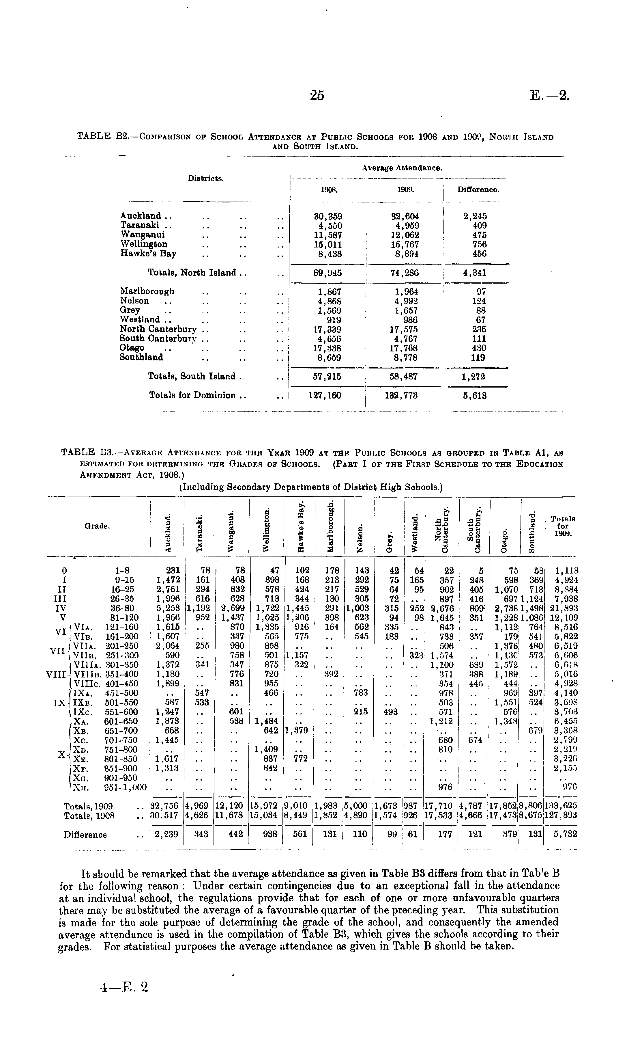 TABLE B2.—Comparison of School Attendance at Public Schools for 1908 and 1909, North Island and South Island.