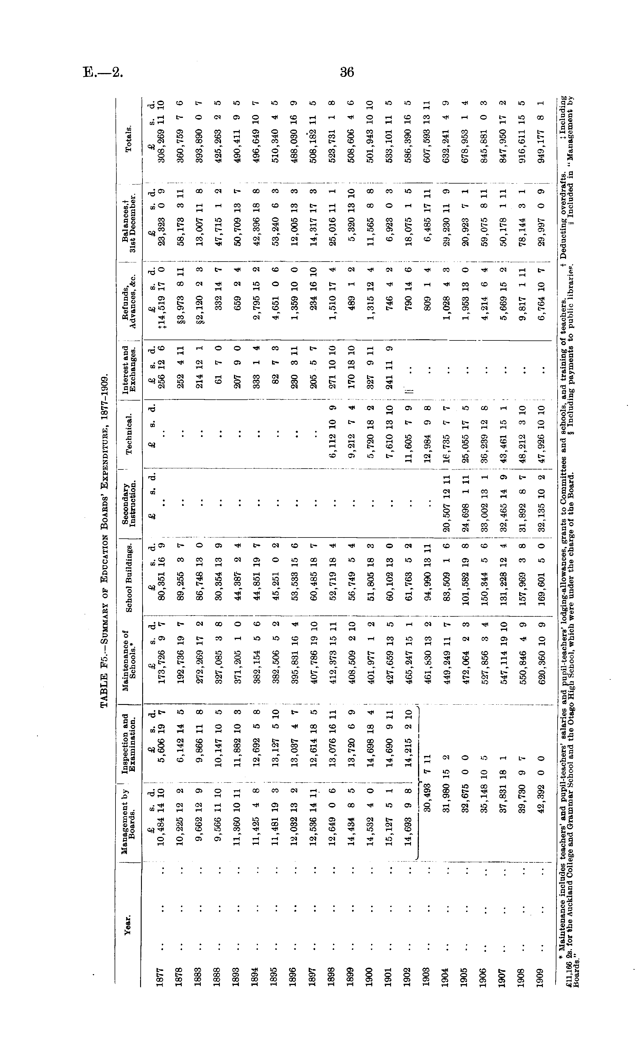 TABLE F5.—Summary of Education Boards' Expenditure, 1877-1909.