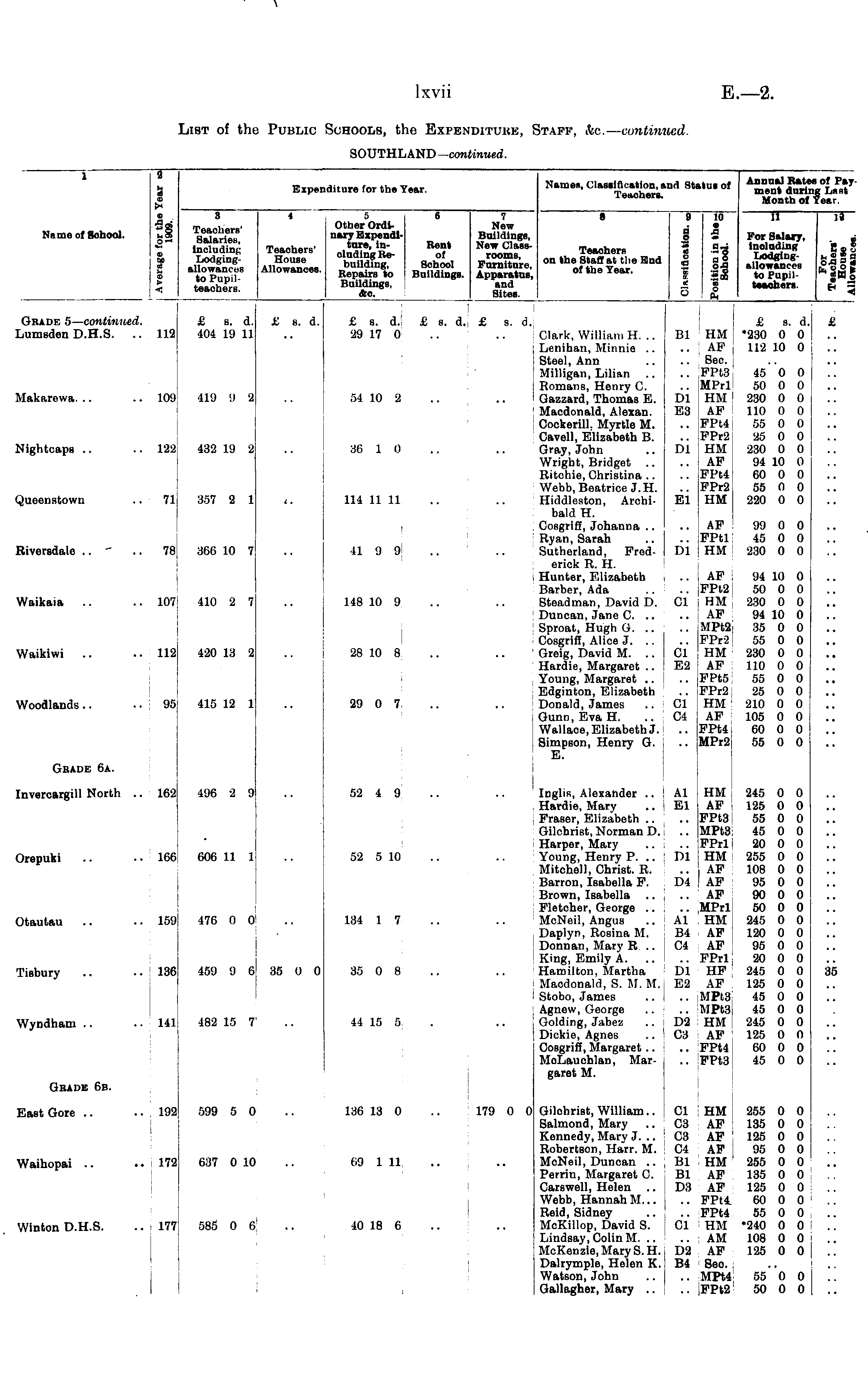 List of the Public Schools, the Expenditure, Staff, &c.— continued. SOUTHLAND -continued.
